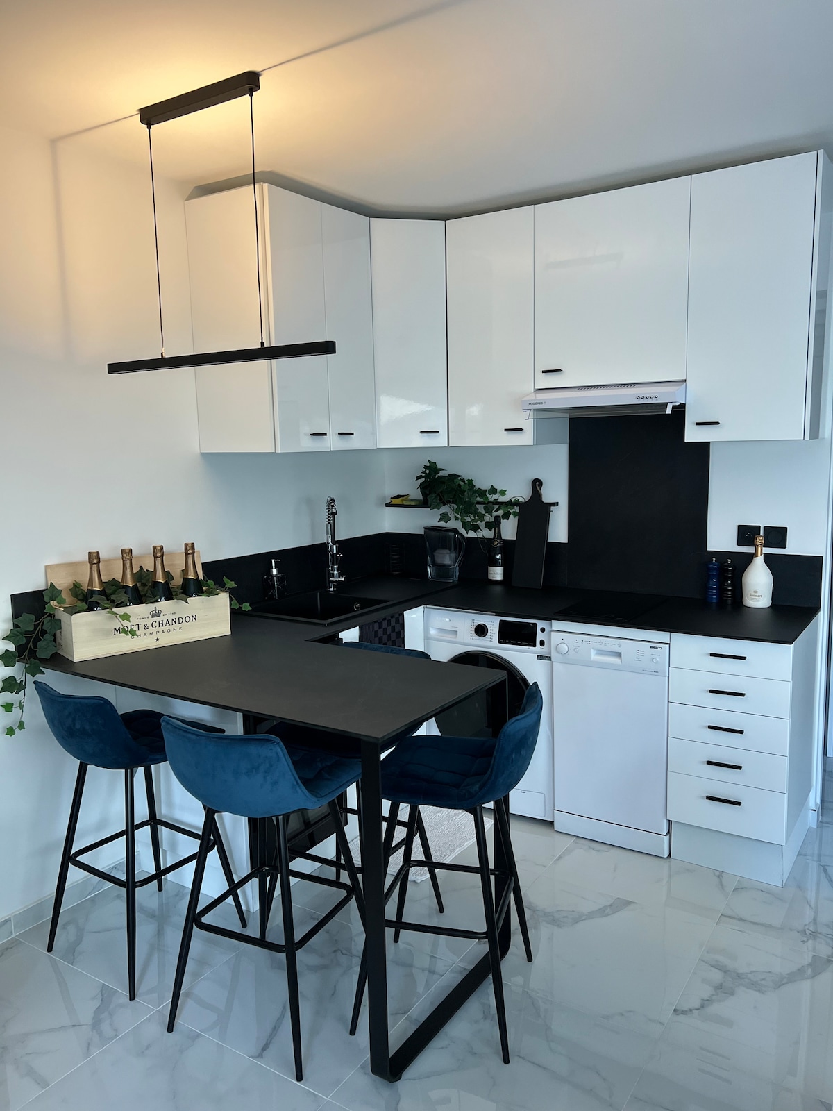 Superbe T2 situé au 2ème étage rénové intégralement avec place de parking privative. Profitez de sa modernité dans un cadre chill, avec une chambre lumineuse, un salon/cuisine accueillant avec une grande baie vitrée donnant accès à une terrasse très cosy et sa vue verdoyante. L'appartement est à 5 min à pied de la plage , ainsi que d'une corniche en bord de mer animée bordée de restaurants, bars et d’un casino ( jeux) Une zone commerciale se trouve juste à côté avec boulangerie, supermarchés