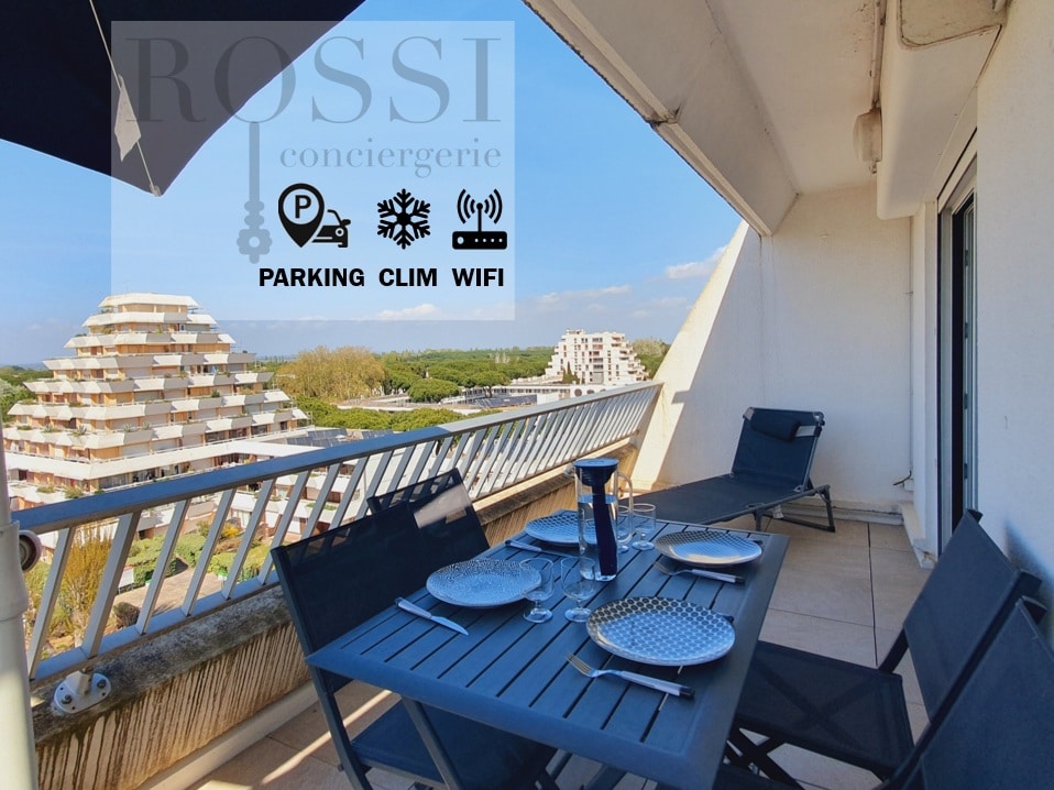 Vous serez à 5 minutes à pieds de la plage et des commerces, en plein centre de la station balnéaire. Le studio, entièrement rénové, est équipé pour 2 personnes, au 3éme et dernier étage de la résidence. La terrasse donne sur la place du marché et offre une vue imprenable et dégagée sur les pyramides iconiques de la Grande Motte avec une petite échappée sur le port et la mer. Dormez dans un vrai lit 160 X 200 et voyagez léger, le linge de maison est inclus. WIFI gratuit.