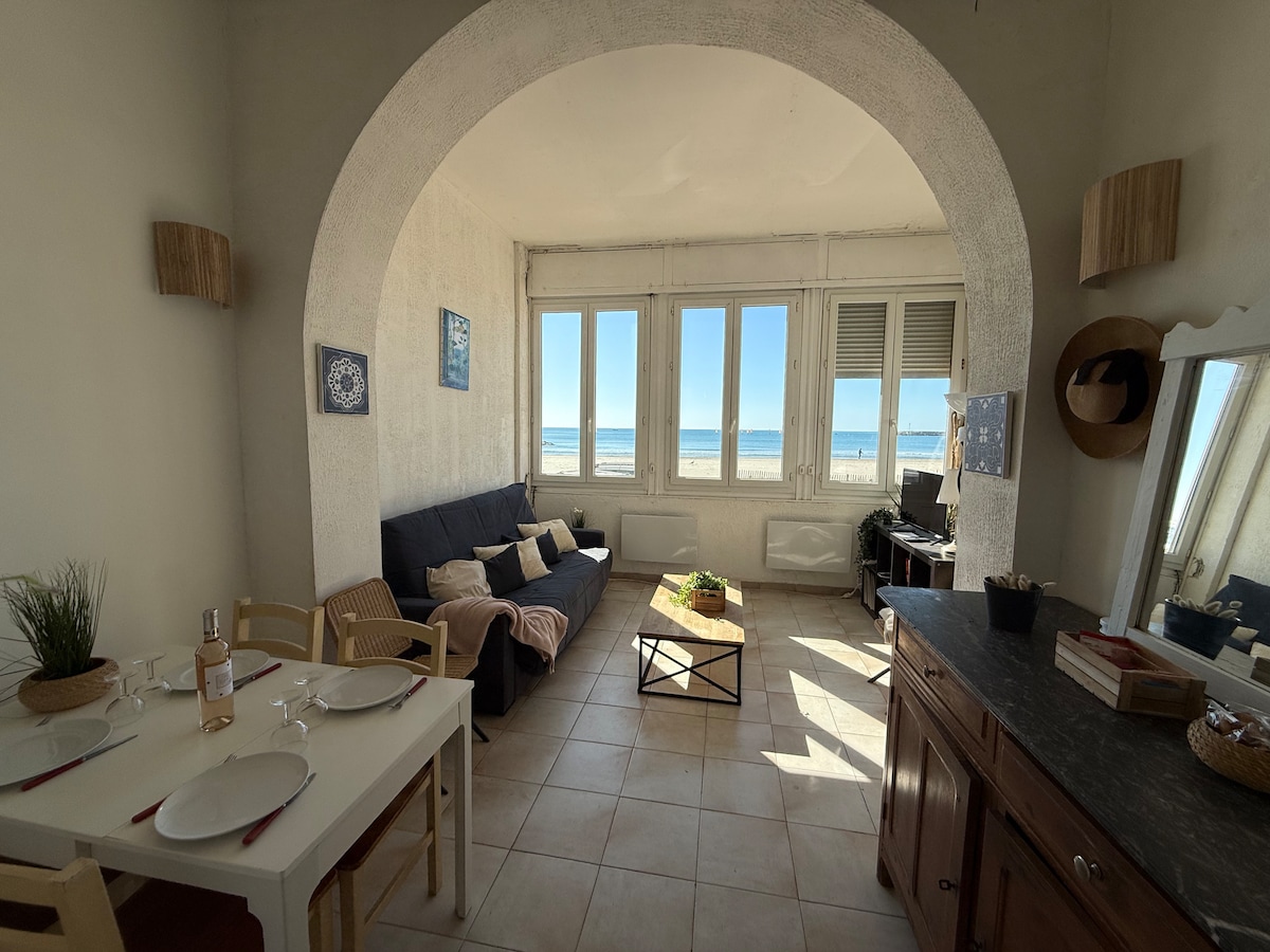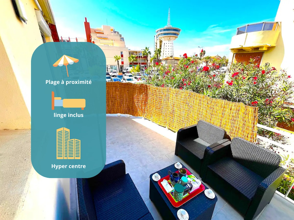 A family haven on the beach, 54m2, bright and air-conditioned. This house is perfect for a relaxing or professional stay. Completely renovated and tastefully furnished, it sleeps 4. Hotel-quality sheets and towels, fully equipped and functional, all you have to do is put your suitcases down. Linen, TV-Wifi box and closed parking included.