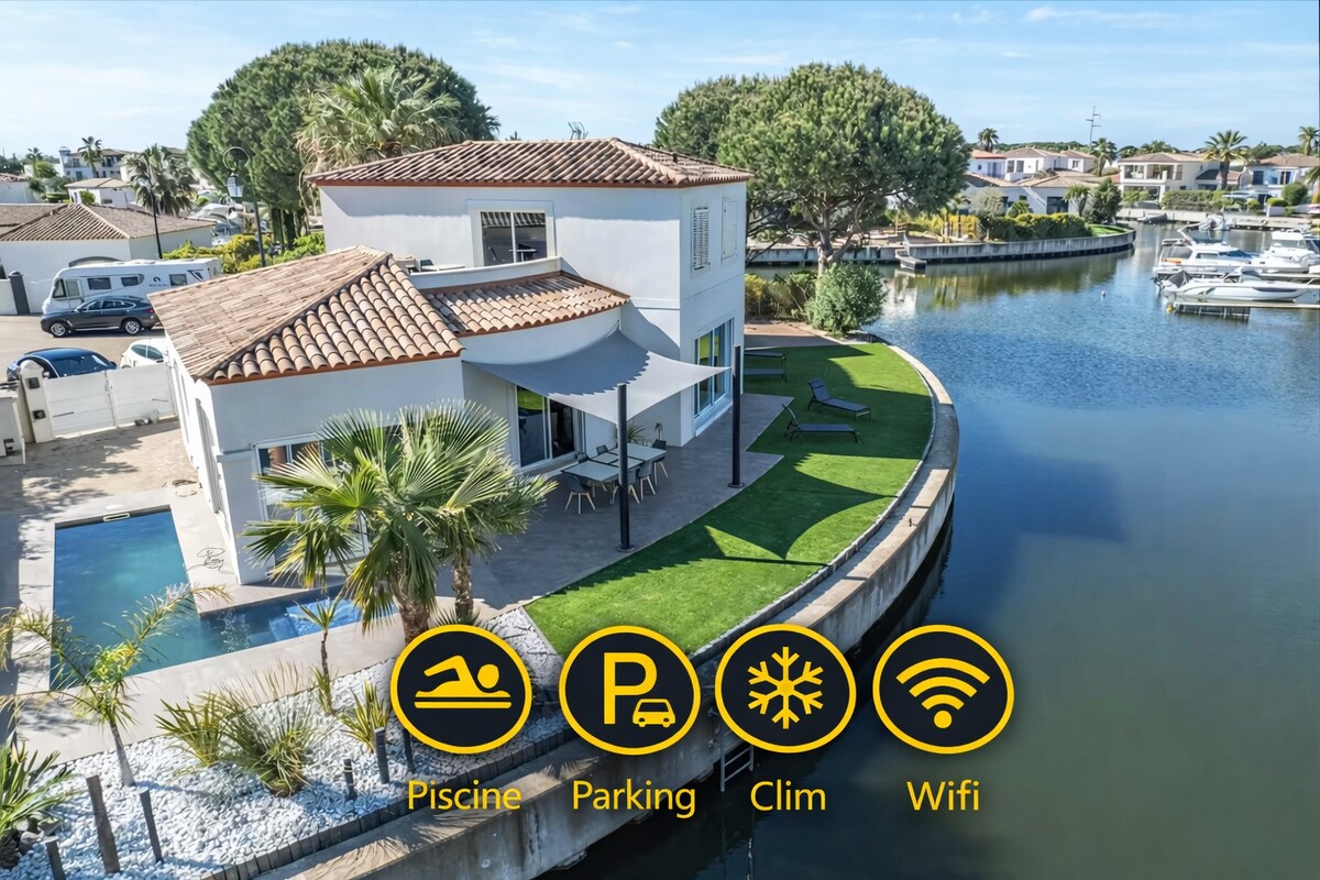 Magnifique maison 3 🌟 moderne spacieuse, elle dispose d’un équipement haut de gamme , un espace extérieur avec salon de jardin à disposition. Cuisine moderne et entièrement équipée, salle de bain italienne au rdv avec wc . Climatisation - wifi - parking privé - 2 chambres à l’étage plus coin nuit ( 3 lits doubles ) wc à l’étage - linge de maison à disposition - centre ville 300m plage 400m ouverture de la piscine le 15 -06 au 15 -09