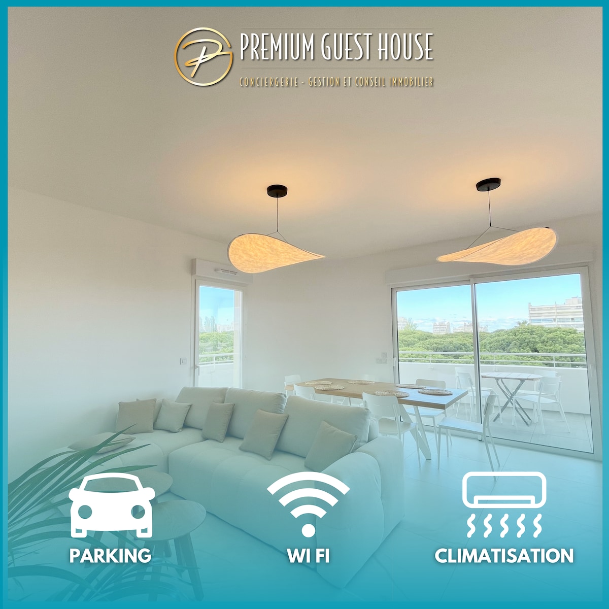 Un appartement, très lumineux, avec une vue sur la mer bénéficie d’un positionnement exceptionnel avec son accès à la plage par la résidence Un appartement tout à pied, et bénéficier des nombreux restaurants, du port et de tout les commerces à moins de 5 minutes Vous bénéficiez d’une place de parking privée et gratuite linge de lit/serviettes sont fournis Ce n’est pas un chauffe serviette dans la salle de bain, mais de quoi l’étendre