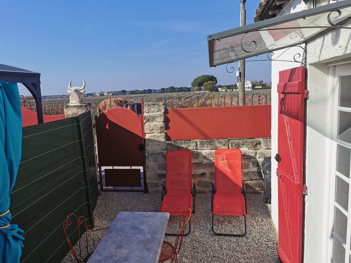 Studio indépendant de 20 m² dans maison de village en pierres. A la campagne, au calme, entre Nîmes et Montpellier, à 6 km de l'autoroute A9 et 20 km des plages. Entièrement rénové, décoré et équipé, climatisation, cuisinette, donnant sur son jardin privatif sans vis-à-vis, fleuri, ombragé, équipé d'une plancha, de chaises longues, d'une table et ses chaises pour repas et détente en plein air.