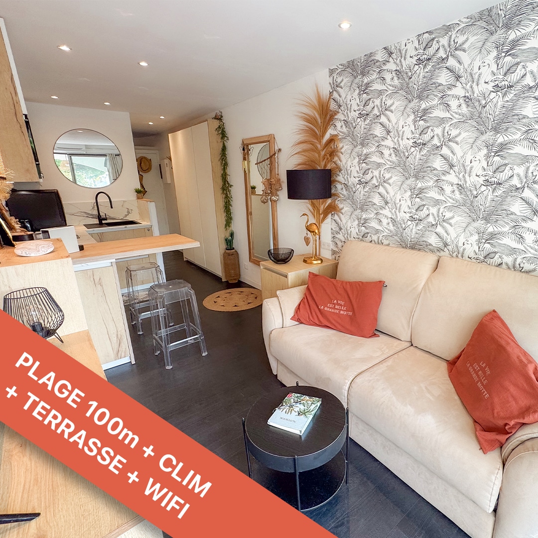 2 pièces climatisé avec terrasse à 100 m de la mer