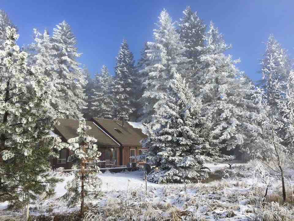 3 bedroom (6 beds) cabin tucked in the woods next to Mount Emily Recreation Area (3,700 acres of recreation and miles of free trails) - just minutes from town. Enjoy hiking, biking, and skiing right out the front door. Host a dinner party in the large kitchen, or cook on the BBQ under the covered deck while your dogs play in the fenced yard. Finish your day cozied up next to the wood stove while the kids enjoy a movie in the bunk room. Dedicated workspace, and very fast Starlink internet onsite.