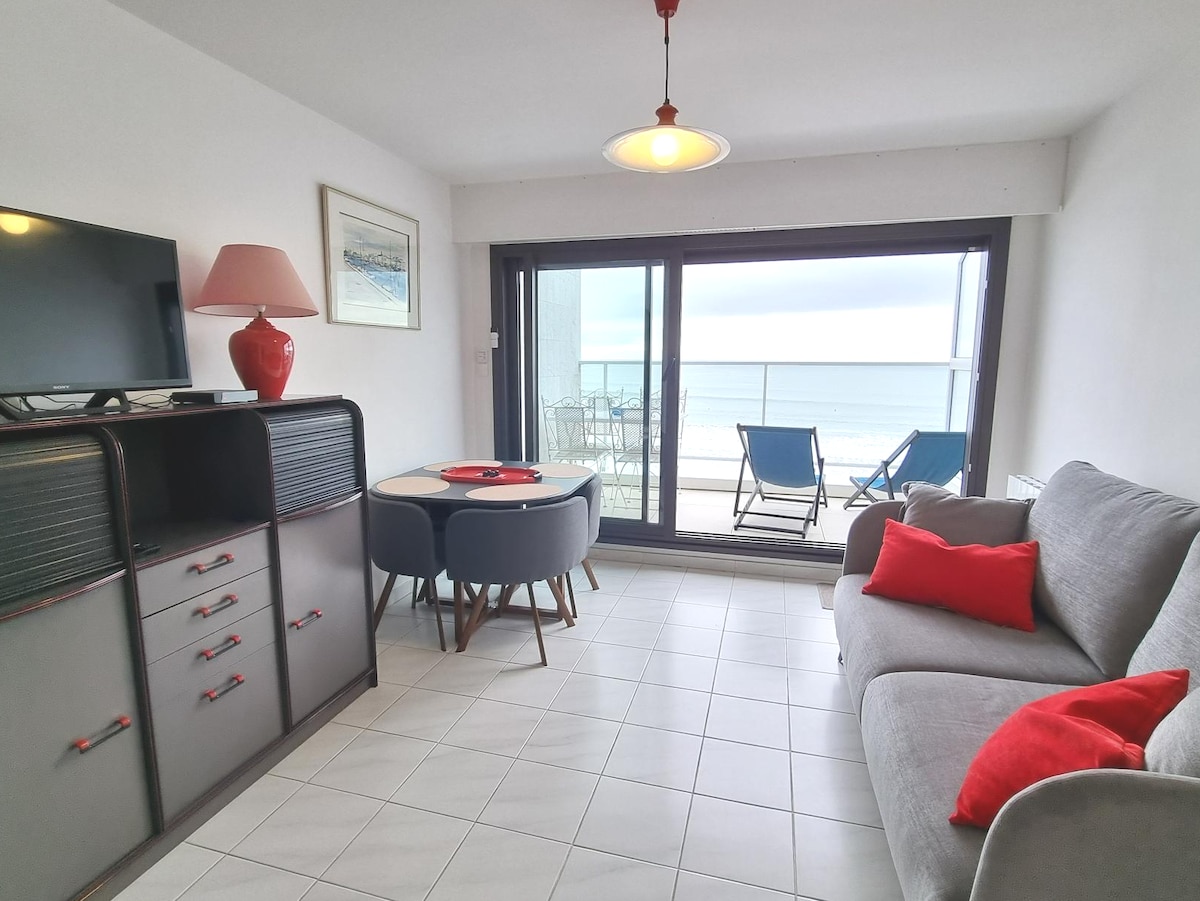 Bienvenus aux Sables ! Joli studio de 32 m2 situé au 7ième étage d'une résidence de standing en plein coeur du remblai. Une vue splendide face à l'océan, sur toute la partie droite de la baie et l'entrée du chenal. La plage et le remblai à quelques pas ! Pour votre confort, une place de stationnement gratuite vous est réservée durant la saison estivale sur juin/juillet/août. Parking à 10mn à pieds du logement. Tout est prévu pour vous accueillir dans les meilleures conditions. À bientôt !