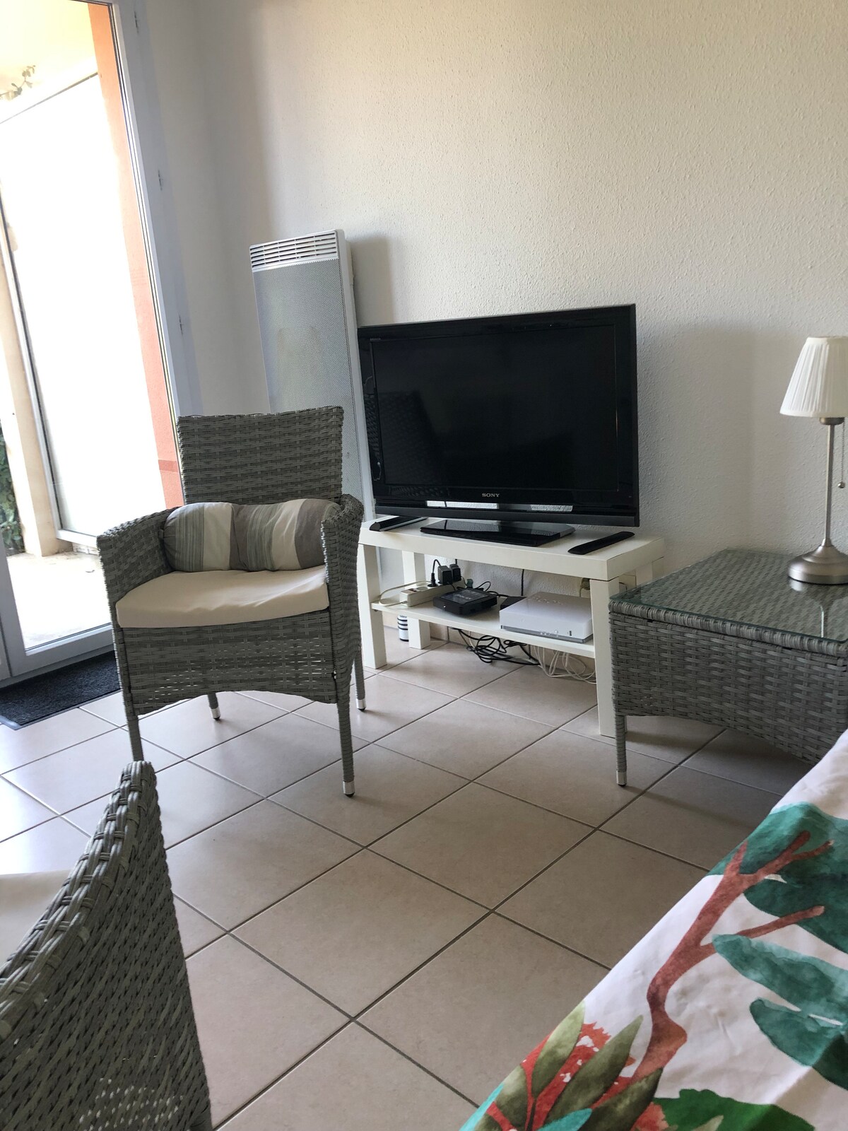 Profitez d'un appartement fonctionnel, central et familial pour 4 personnes - Accès immédiat remblai et plage. 2 pièces - EMPLACEMENT IDEAL - TOUT A PIED PAR EXCELLENCE. Cuisine ouverte sur pièce de vie - SDB WC séparé - grande chambre - placard (lit 180cm - Literie neuve - Matelas 90x2). Salon possédant un canapé-lit (Le 2eme couchage). Le logement est meublé et équipé. Écran plat dans salon et chambre. GARAGE ATTENANT - Piscine privée collective. Proche des restaurants, du marché ARAGO.