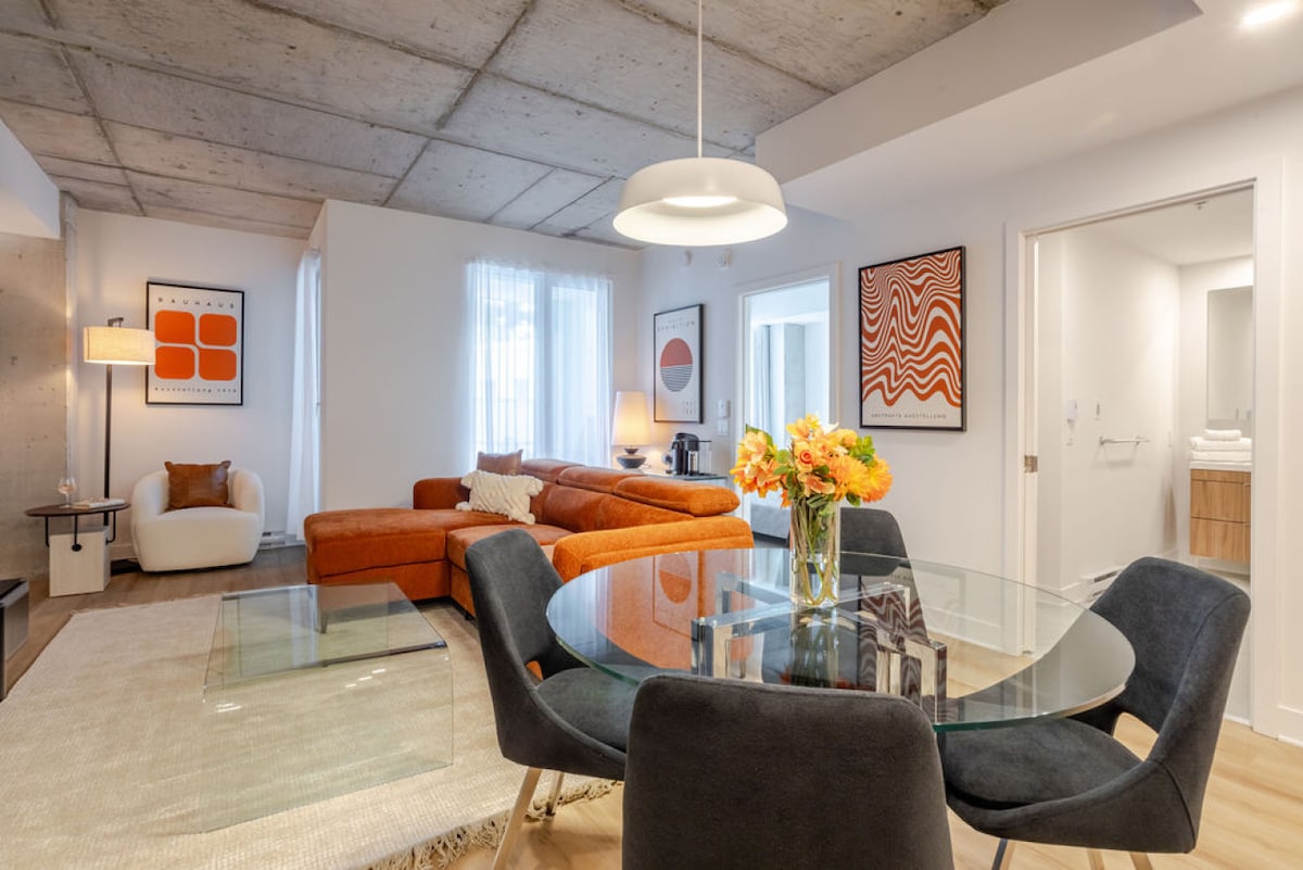 Charming 1-Bedroom Apartment in the Heart of Griffintown Experience Montreal like a local from this stylish one-bedroom apartment, perfectly located just steps from Downtown, the Lachine Canal, and the Old Port. Enjoy a cozy bedroom, bright and modern living area, fully equipped kitchen, and high-speed Wi-Fi. Surrounded by trendy restaurants, cafés, boutiques, and public transit, it’s the ideal home base for business travelers, couples, or anyone seeking a chic Montreal getaway.