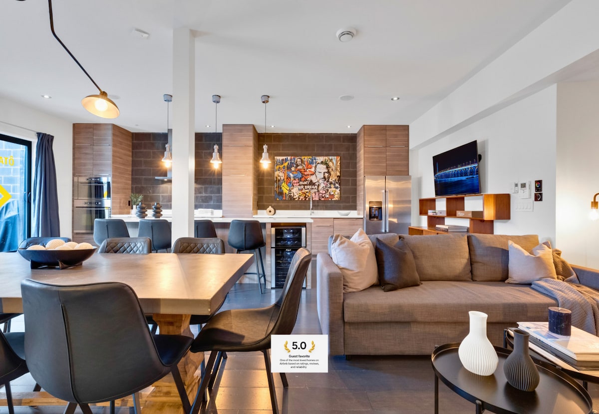 Stay in a spacious 2,500 sq ft 2-bedroom rooftop penthouse in Plateau Mont-Royal, minutes from Downtown Montréal. Private rooftop terrace with city views, lounge seating, dining, and BBQ—ideal for families, groups, and extended stays. Modern space with curated décor, Smart TV, ultra-fast WiFi, and everyday comforts. Poker mat & chips included for game nights. Guest Favorite • 5,000+ reviews • 10+ years Superhost.