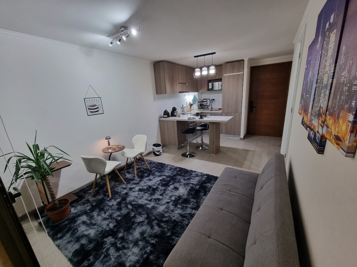 Acogedor departamento recién inaugurado en La Florida, ideal para 2-4 personas. Cuenta con 1 dormitorio con cama matrimonial y un sofá cama en el living. Terraza privada con mesa y sillas, cocina equipada, Wi-Fi de alta velocidad y TV. El edificio ofrece sala de coworking, gimnasio, quincho y piscina (bajo reserva). Incluye estacionamiento sin costo. Ubicación estratégica cerca del metro Mirador, Mall Plaza Vespucio y con fácil acceso a la Autopista Vespucio Sur. ¡Perfecto para tu estadía!