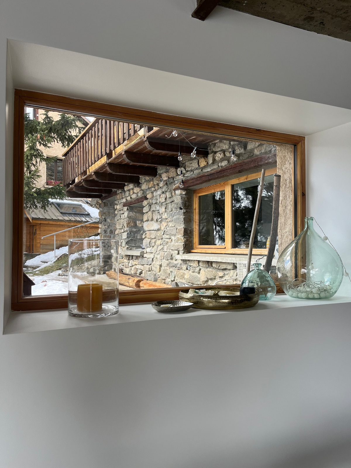 L'appartement est composé d'un hall, d'une SDB + wc, d'une pièce à vivre (cuisine et canapé convertible) ainsi qu'une chambre avec lit parapluie. Pour accéder à celle-ci, il faut passer par la pièce à vivre. Une terrasse située devant l'appartement permet de manger dehors en face de la Meije. Une barrière protège du ravin mais les enfants en bas âge doivent rester sous la surveillance des parents. L’appartement au-dessus est occupé régulièrement par les propriétaires.