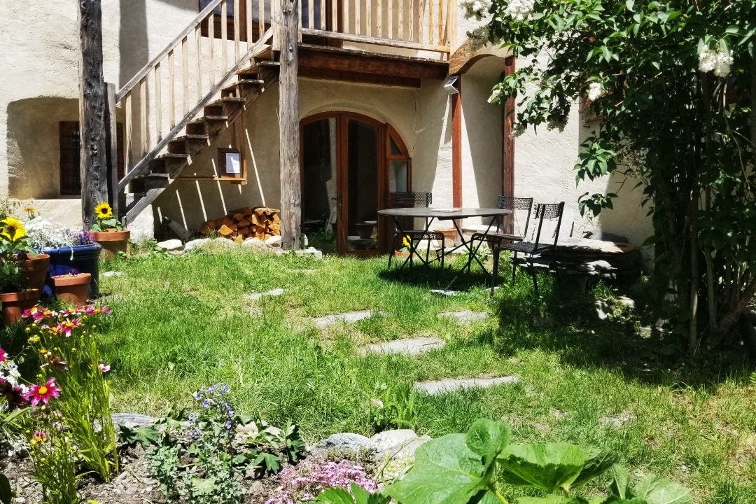 Newly finished modern ground floor suite in local family house with sunny patio/garden/bbq access on the uphill edge of the tiny quiet hameau of Ventelon. One bedroom with queen size bed and single bunk with additional single bed/sofa in living area (baby bed/high chair also available) with views to the high summits. Fully equipped kitchen with induction cooking/oven. Perfect base for direct ski touring/hiking/paragliding access to the fabulous terrain on the sunny side of the valley.