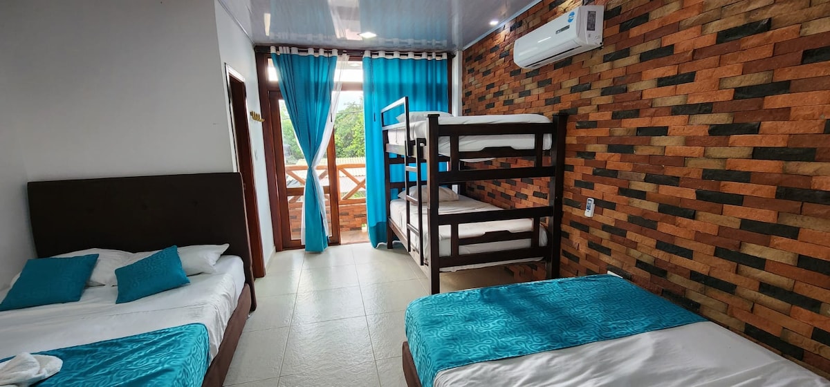 HABITACION CUÁDRUPLE CON 2 CAMAS INDV + 1 CAMA DBL / BAÑO PRIVADO Hotel Emerawaa es el lugar perfecto para una estancia relajada y cómoda. Ambiente campestre para disfrutar de la tranquilidad que brinda la naturaleza. Cuenta con piscina, kiosco, zonas verdes y parqueadero privado al interior del establecimiento. Tú estancia en Emerawaa será inolvidable. EMERAWAA significa Descanso en Wayuunaiki, la lengua de los indígenas nativos de La Guajira