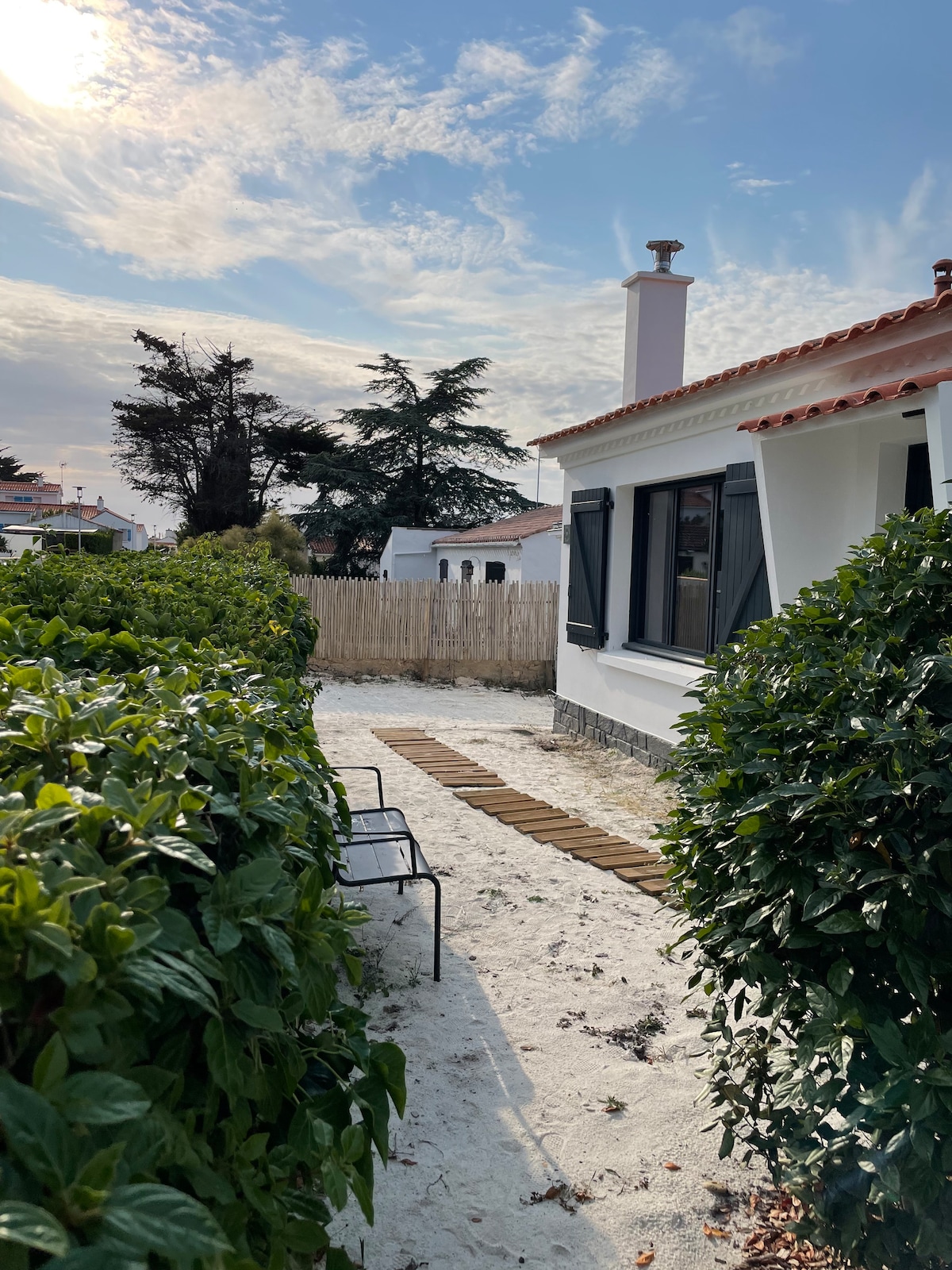 Petite maison entièrement rénovée avec goût et très bien équipé. Vous disposez d'une cours équipé d'un salon de jardin et de 2 chiliennes. Situé près de la plage, du port du bonhomme et des pistes cyclables. De avril à septembre une supérette ainsi qu'un bureau de tabac se trouve à proximité.