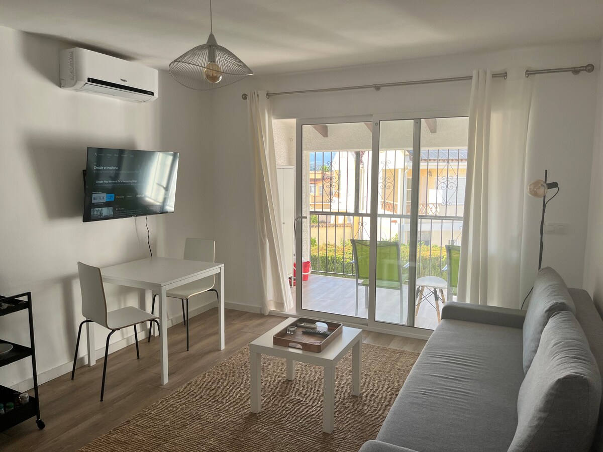 Apartamento VIP recién reformado y amueblado a 700m del mar con un dormitorio y sofá-cama. Todo lo necesario para una pareja. Con smartTv en comedor y habitación de 55”. 1 baño totalmente equipado y con todas las comodidades (secador de mano, productos de aseo)... Wifi por todo el espacio. Salón comedor con zona de descanso muy luminoso , con preciosas vistas . Cocina completamente equipada, servicio de café y té, lavadora-secadora, tostadora, vitrocerámica, horno microondas, nevera.