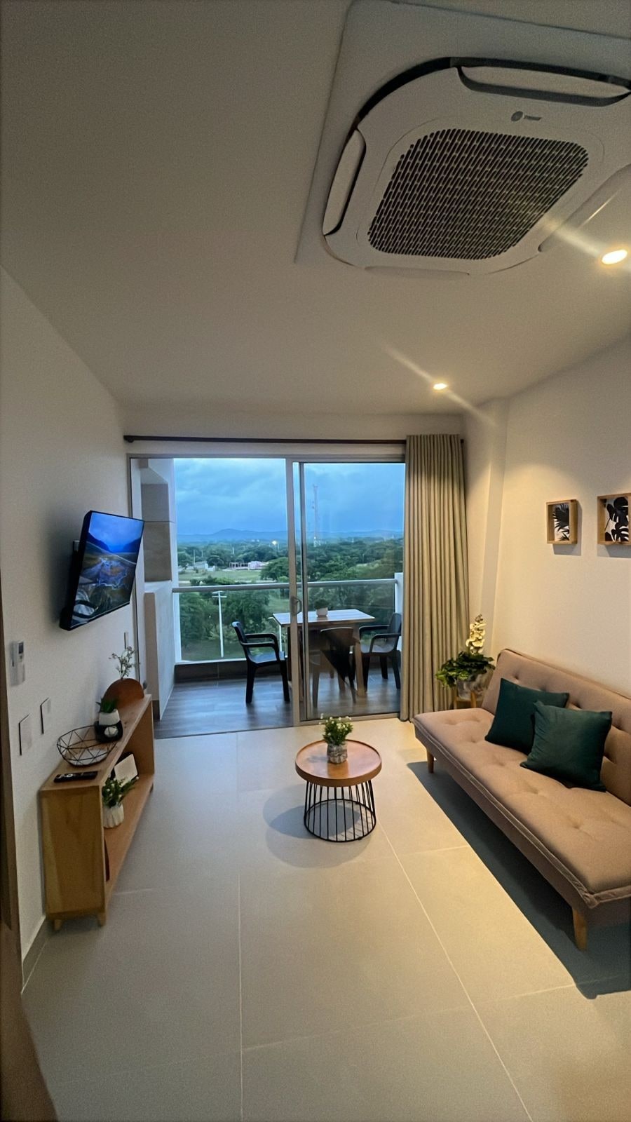 World's #1 Amenity: Crystal Lagoons, for the first time in Colombia. Relax and unwind in this tranquil, humble yet elegant accommodation, featuring a white-sand artificial lagoon, just like you're on the beach. The complex offers a gym, teleworking, outdoor exercise, and more. The apartment features air conditioning and a TV in the living room and bedroom, 900mb Wi-Fi, a refrigerator, natural gas stove, microwave, coffee maker, blender, air fryer, and more.