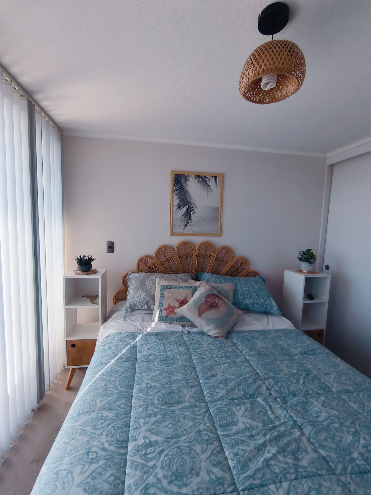 Comfortable apartment steps from La Herradura Beach, it has everything you need for a perfect stay, furnished kitchen, living room, Smart TV, Wi-Fi, independent entrance at any time, spectacular view of Route 5 and La Herradura Beach. Free indoor parking. king bed with capacity for 2 adults + 1 child