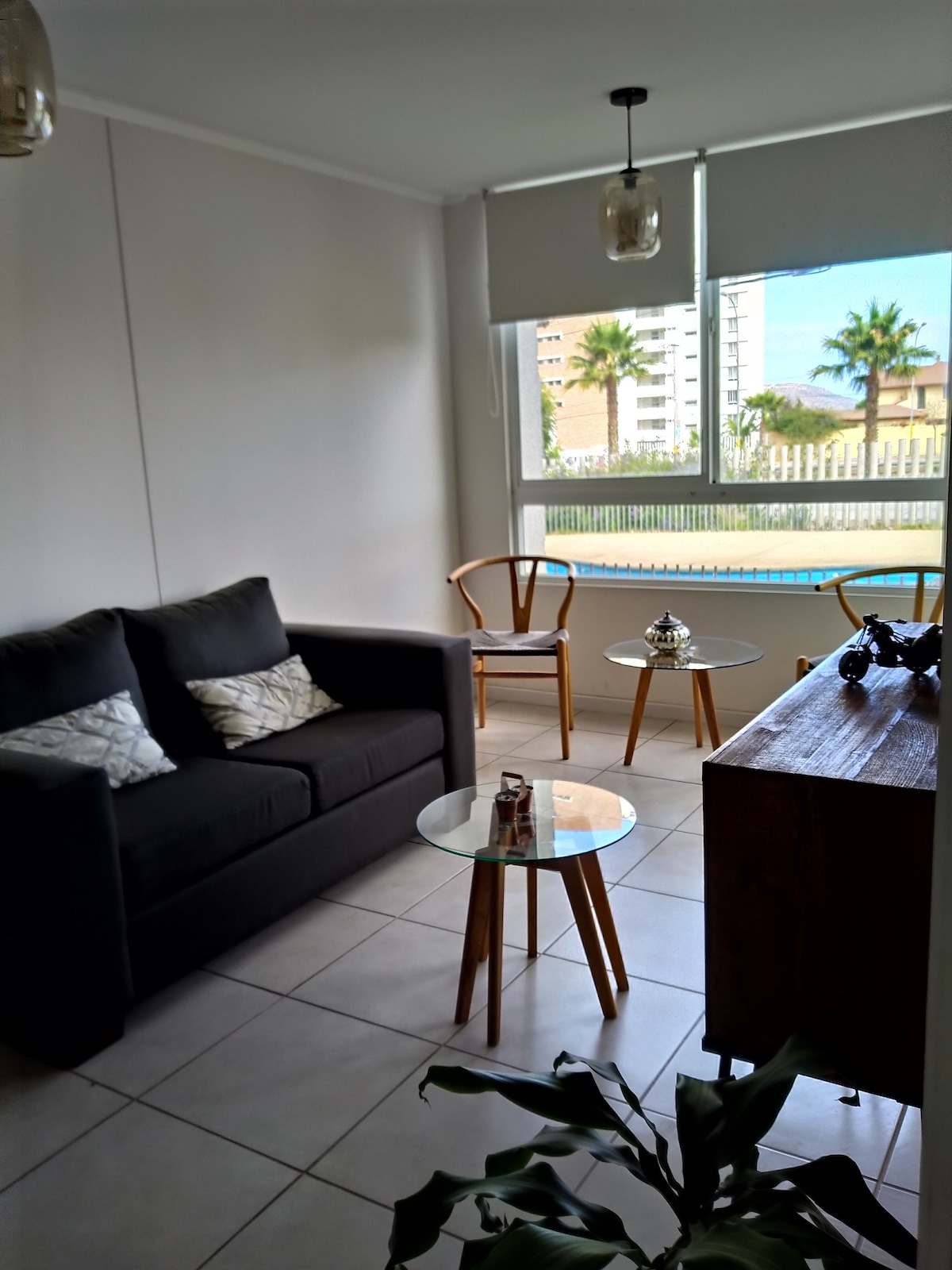 Espectacular apartamento con vista al mar en playa La Herradura,. Conexión directa a la autopista, con estacionamiento, a 3 minutos caminando de la playa, cruce seguro (puente peatonal). A pasos de restaurantes, supermercados, farmacias y otros comercios. Disfruta una estadía cómoda en un apartamento full equipado, con todo lo que necesitas para vivir. Incluye las sillas de playa para que puedas ir cómodamente a la playa en familia. Acceso a piscina, gimnasio y quinchos dentro del recinto.