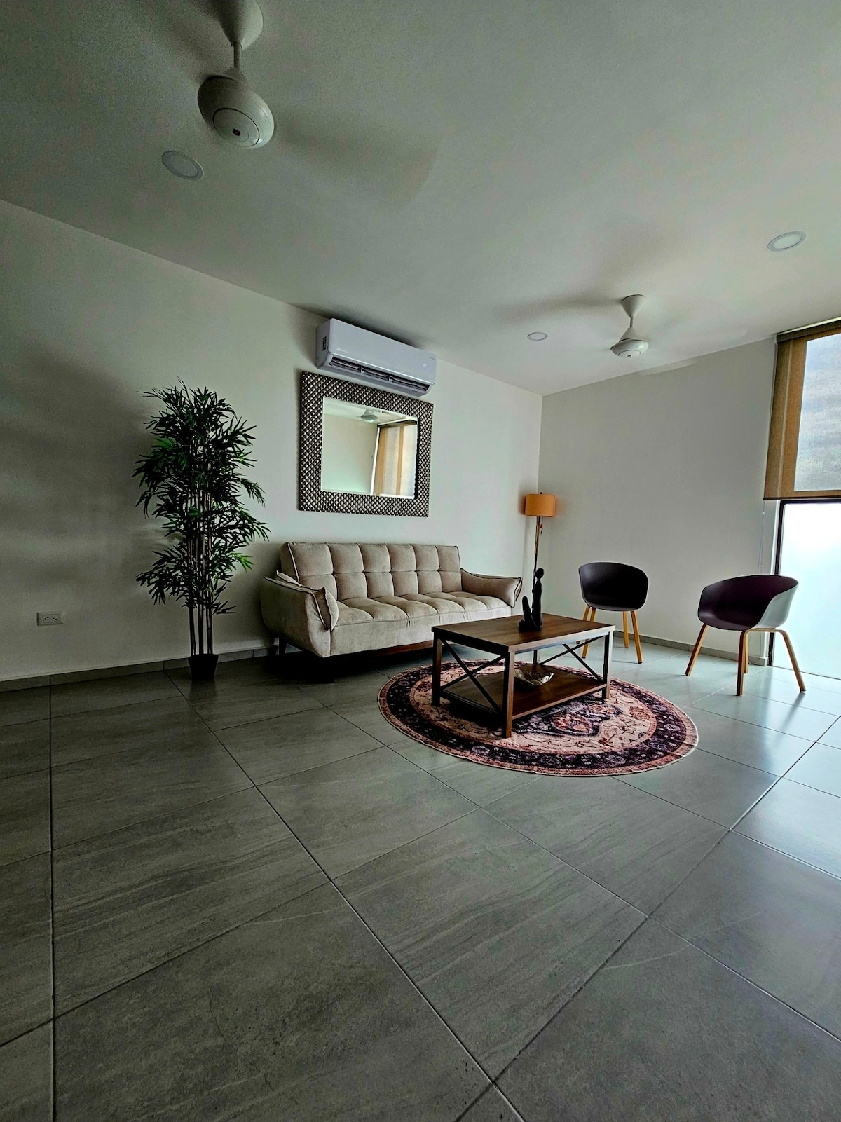 Apartment Loft style (40 m2) in closed complex ( of 5 apartments in total). The Apartment has social space, small kitchen with basic things to cook, upstairs 1 bedroom with great beding, 1 bathroom. The space its ideal for 2 people but we have an sofa bed we can comfortably take 3 people. Parking space inside teh property. 10 minutes away by car from Paseo de Montejo and Centro, and 10 minutes away fron the north of the city. Great connection with circuito. Parque de la Aleman 2-3 blocks away.