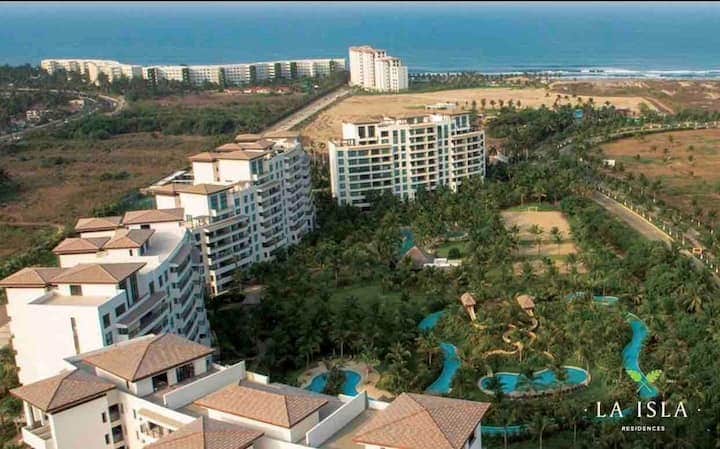 Increíble depa a unos pasos del Centro Comercial La Isla y del Centro de Convenciones. El desarrollo La Isla Residences & Spa es el más seguro y completo de acapulco pues cuenta con club de playa, albercas, toboganes, gym, spa, cine, etc. Amazing apartment a few steps away from the La Isla Shopping Mall and the Acapulco Convention Center. The development The Island Residences & Spa is the safest and most complete in Acapulco as it has a beach club, swimming pools, slides, gym, spa, cinema, etc.