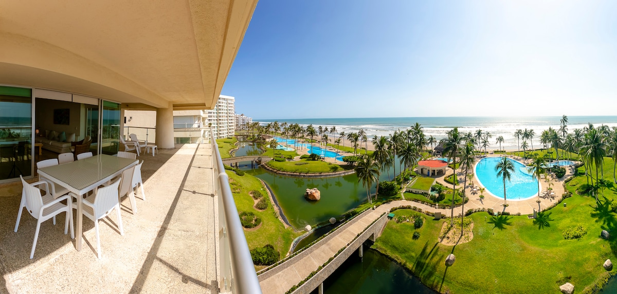 Condominio de lujo a pie de playa. Amplio y agradable departamento con vista al mar. Remodelado y moderno. Tres habitaciones, tres baños completos, sala, comedor, cocina integral equipada, lavavajillas, terraza en la recámara principal. Cuarto de lavado. Un lugar de estacionamiento cubierto. Seguridad las 24 horas. Gran Zona de piscinas y acceso directo a la playa.