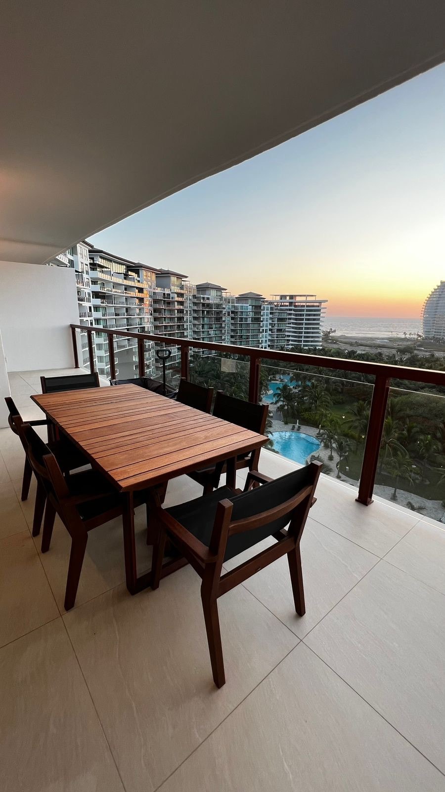Modern and comfortable apartment in the heart of the Mexican Pacific, ideal for families or groups seeking rest, fun, and luxury in Acapulco Diamante. With 3 bedrooms and 3 full bathrooms, it accommodates up to 6 adults. The stay includes a fully equipped kitchen, a balcony with partial ocean view, and all the comforts to make you feel at home. Views of gardens, palm trees, and pools within one of the most exclusive residentials in the area. Includes 2 parking spaces.