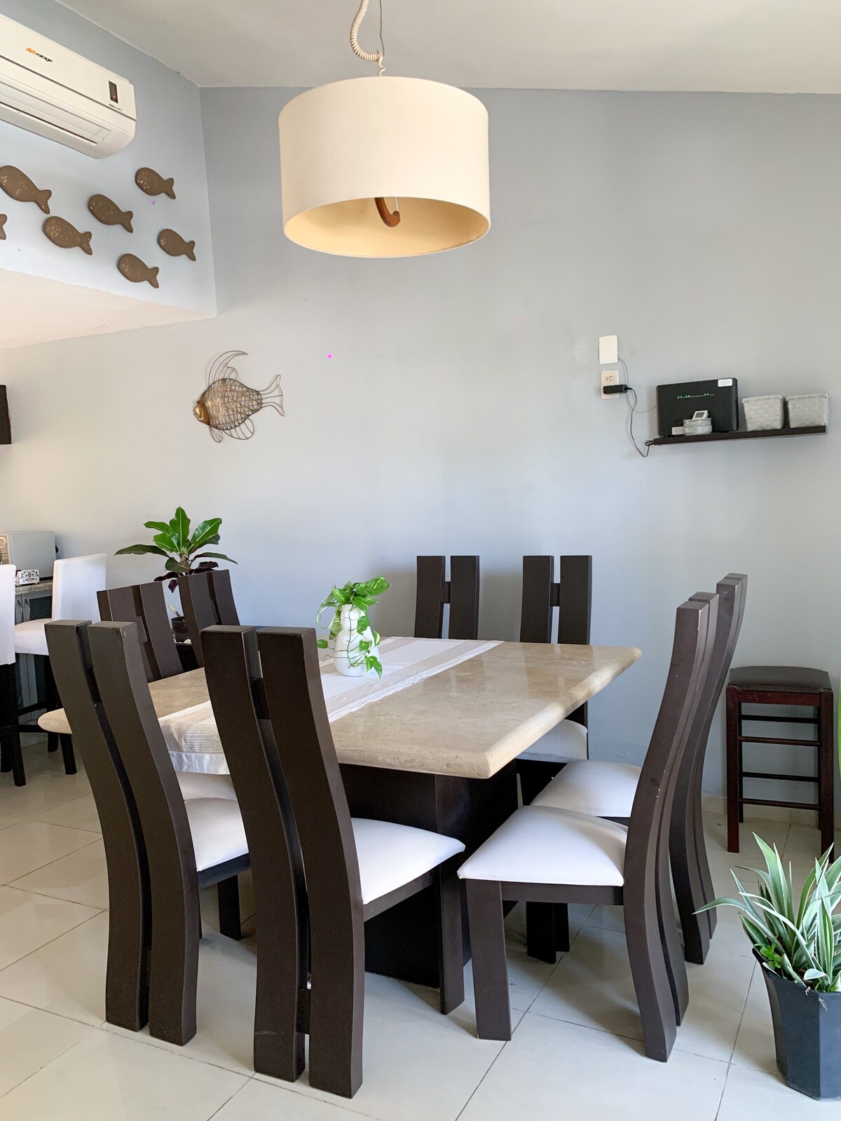 Cómoda y Acogedora casa para 8 personas, con amplia alberca en el fraccionamiento a sólo unos pasos de la casa. Cuanta con cocina totalmente equipada, así como sillas y sombrilla para uso en la playa. A 5 minutos del centro comercial la Isla, Mundo Imperial y Chedraui Selecto. Localizada en la bella área residencial de Acapulco Diamante, ideal para familias. Contando con seguridad las 24 horas y excelentes instalaciones. Dentro del fraccionamiento se ofrecen servicios como Spa, Belleza.