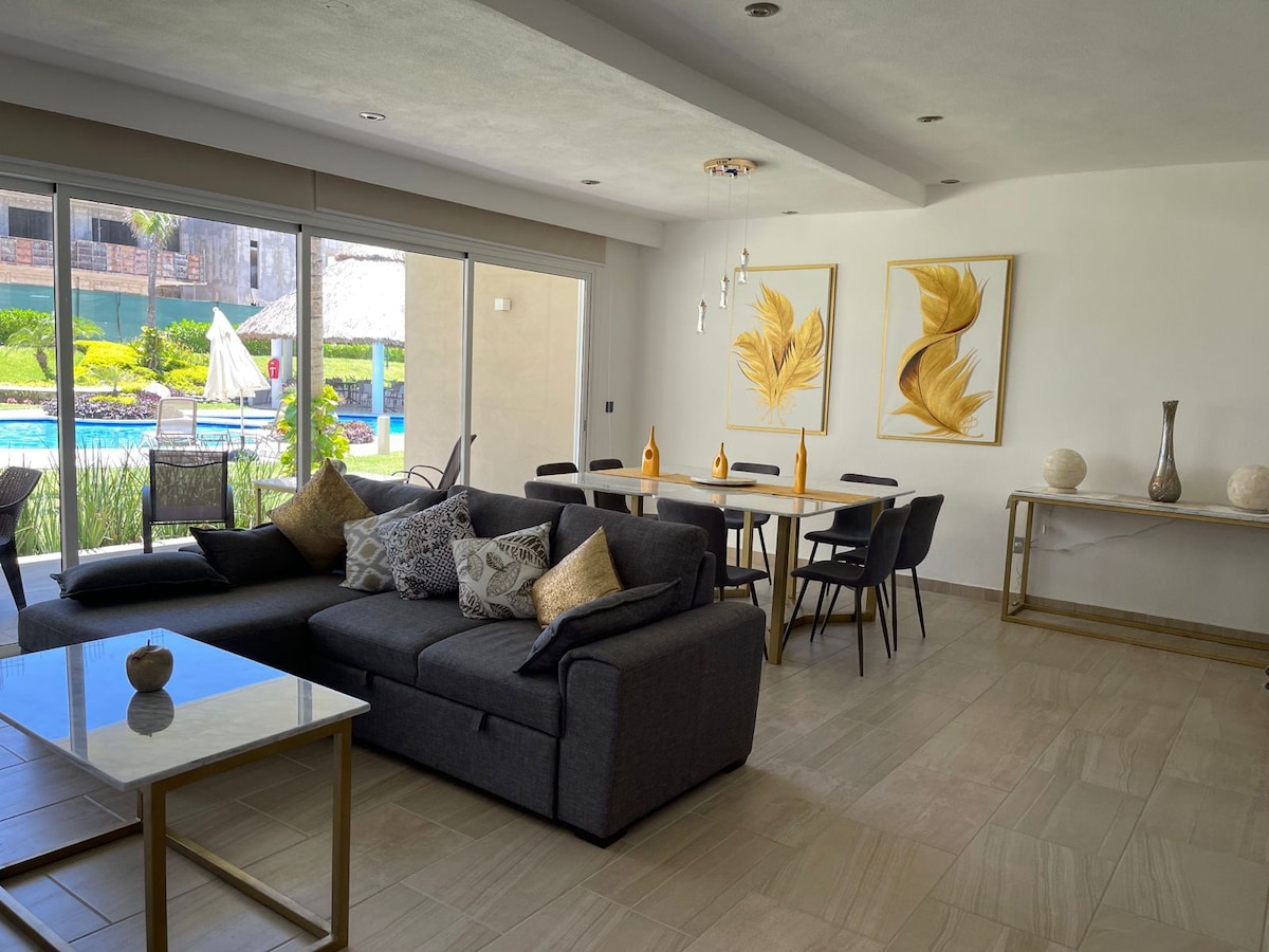VIVE LA EXCLUSIVIDAD!! Disfruta de una experiencia única en este nuevo y exclusivo departamento de lujo, ubicado en una de las zonas más prestigiosas: ACAPULCO DIAMANTE. Ideal para quienes buscan confort y privacidad. Ubicacion privilegiada, a solo minutos de "La Isla Shopping Village", restaurantes gourmet, campo de golf y aeropuerto. Ideal para vacaciones, home office o largas estancias. Vive el estilo de vida que mereces!. RESERVA AHORA Y DEJATE ENAMORAR !!! Entrada 3pm salida 11 am