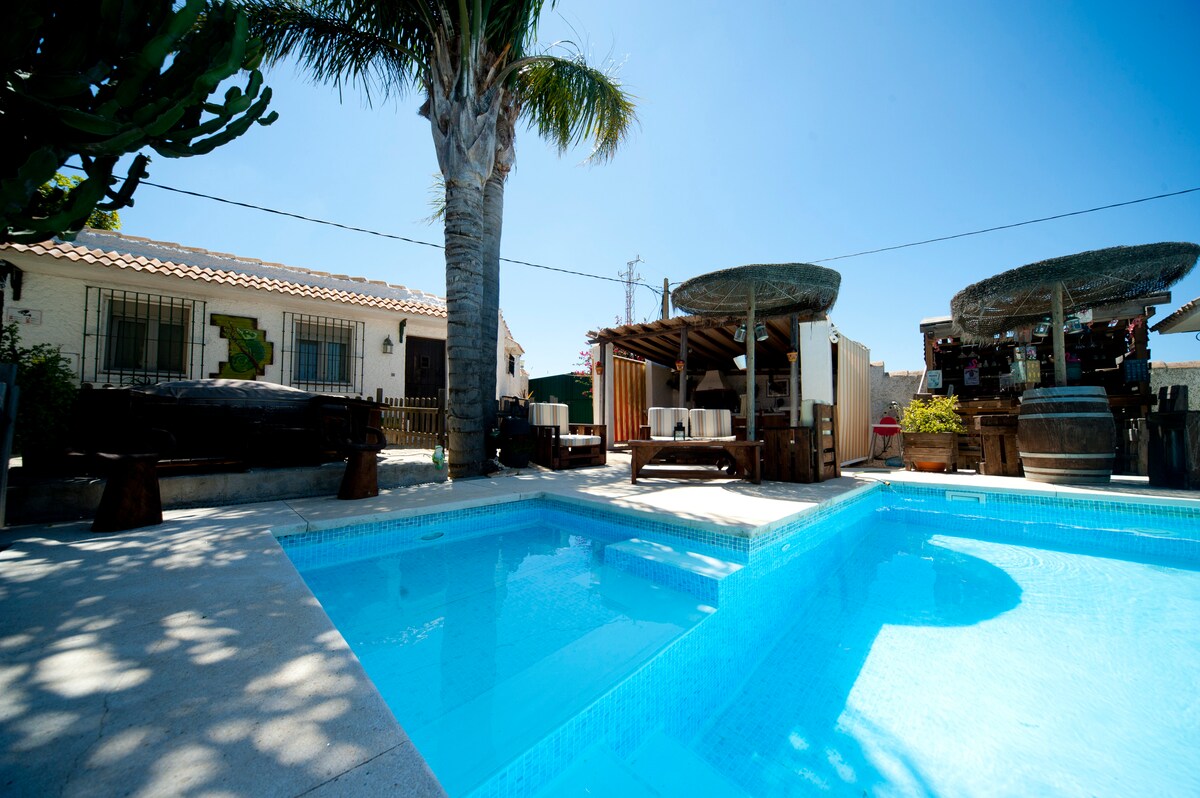 A peaceful country get-away with luxury amenities. Nestled in the Andalusian mountains and only 20 min to the sea & coastal towns. Child friendly. The jacuzzi & indoor pool are heated year round and for your use. They are in private areas of the property. There is an outdoor kitchen with gas BBQ, bluetooth speaker, and dining space near the pool. The casa has a covered terrace with views of the avocado orchard. The gardens are lush with tropical plants, colorful blooms & sprawling lawns.