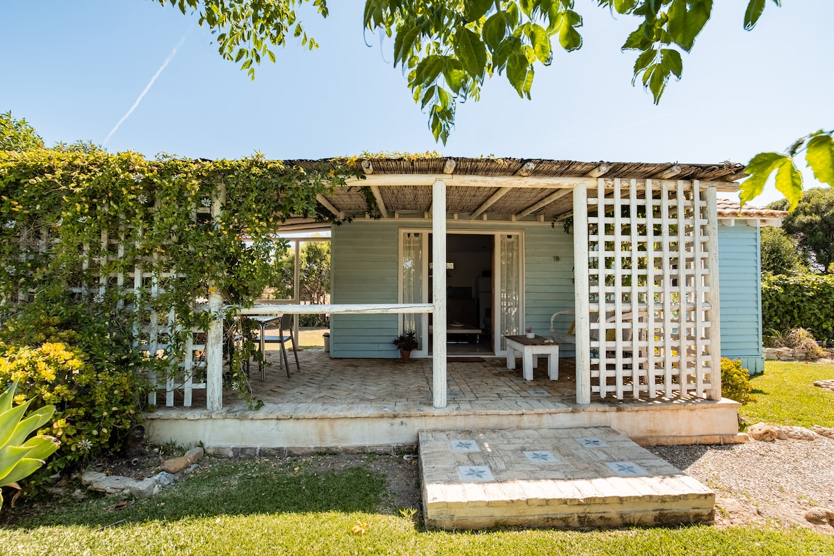 Cabaña independiente situada en nuestra parcela en la playa de los Alemanes, rodeada de pinos y palmeras y con vistas al mar, decorada con mucho cariño. Si estáis buscando playa y tranquilidad, éste es vuestro sitio. Estamos a 4 minutos andando de la playa de los Alemanes y a 20 minutos del Cañuelo, dos de las playas mas bonitas de Andalucía. El bonito pueblo de Zahara de los Atunes está a 5 km de la casa. La cabaña dispone de cocina y baño independiente.