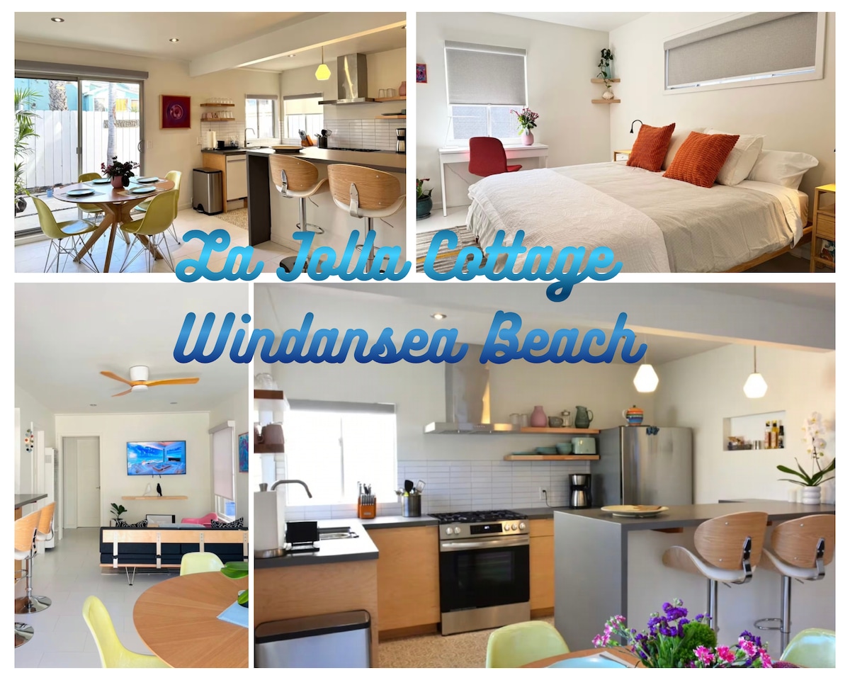 Charming one-bedroom guesthouse in La Jolla, California. Just a 6 minute walk from windensea beach. Private entrance with self check in. Newly renovated living, dinning and kitchenette. The bedroom features a plush California king-size bed. sleeper sofa pulls out to a comfortable full-size bed. The modern bathroom is spacious, clean and inviting. Amenities for the beach will be ready for you. Chairs, umbrellas, cooler, beach toys and boogie boards and 2 bikes Relax on your private porch.