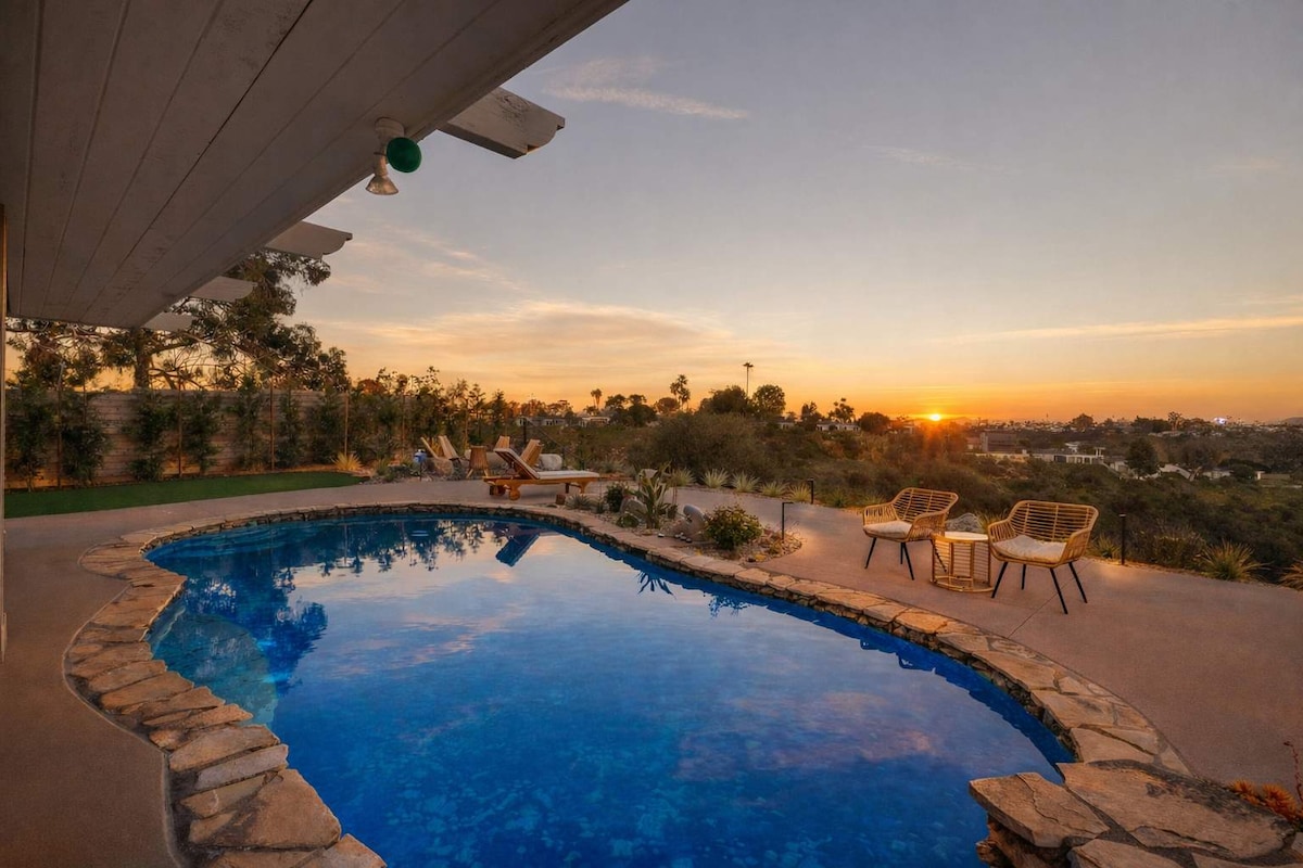 VERY PRIVATE, COMPLETELY RENOVATED 4BR 3 Bath mid-century home with heated saltwater pool, hot tub and fire pit in totally private backyard retreat. Redone top-to-bottom, inside/out with everything new. The beds are top of the line with very high quality 100% cotton sheets and bath towels. Conveniently we are centrally located in a safe, friendly neighborhood with beautiful mountain views in the back. We never charge any fees - as we want to provide the experience we hope to get when traveling.