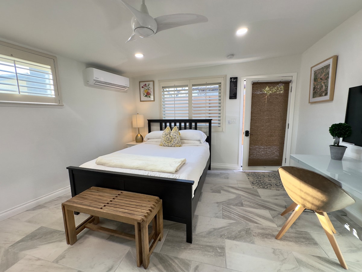 Charming one-bedroom guesthouse in La Jolla, California. Just a 6 minute walk from windensea beach. Private entrance with self check in. Newly renovated living, dinning and kitchenette. The bedroom features a plush California king-size bed. sleeper sofa pulls out to a comfortable full-size bed. The modern bathroom is spacious, clean and inviting. Amenities for the beach will be ready for you. Chairs, umbrellas, cooler, beach toys and boogie boards and 2 bikes Relax on your private porch.