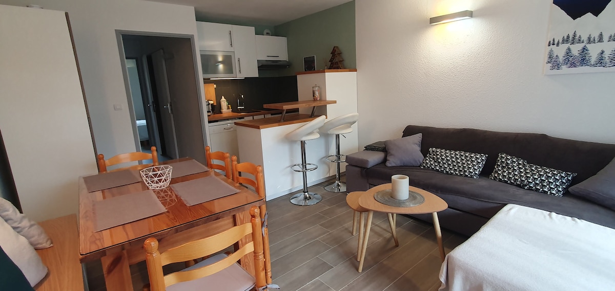 Pendant toute la saison hivernale ❄️, profitez de linges de lit 🛌 et de bain inclus dans votre réservation ! 🎉 🏔️ Notre T3 ambiance chalet à La Joue du Loup, spacieux, lumineux et orienté plein Sud ☀️. Situé dans une résidence calme, à 5 min à pied du front de neige ⛷️ et face au centre Odycéa 💦 (piscine, spa, hammam). Terrasse avec chiliennes 🪑, wifi fibre 📶, TV Android 📺. Confort et détente pour des vacances en famille inoubliables ❤️.