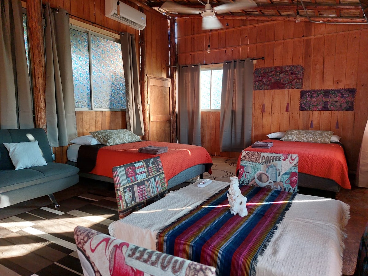 Escape with your favorite person to this magical suite in the heart of Baja’s desert. Sleep in a queen-size bed overlooking the golden horizon and let the moon and stars wrap around you each night. Enjoy a hot shower outdoors and connect with nature in total privacy and comfort. An intimate, quiet, and charming hideaway to reconnect, fall in love, and be surprised by the beauty of simplicity.