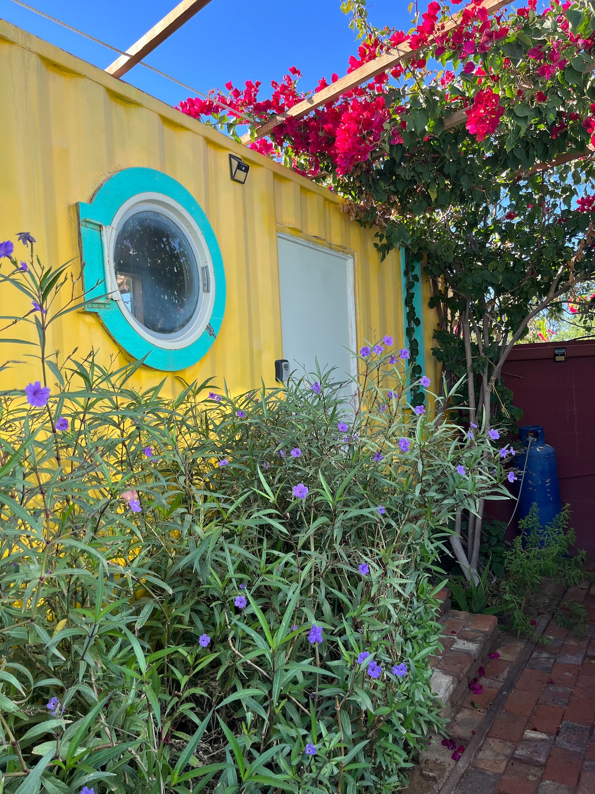 Philadelphia Street Containers is a boutique-style hotel container experience. There are five private spaces within the complex, all ranging in different sizes and designed to perfection. Rent the entire hotel or rent each space individually. “Judy” is a 200sf private space with a walk-in shower, queen-size bed, desk, and fun art throughout. Outdoor spaces, including the cowboy pool, are shared with guests renting the four other units.