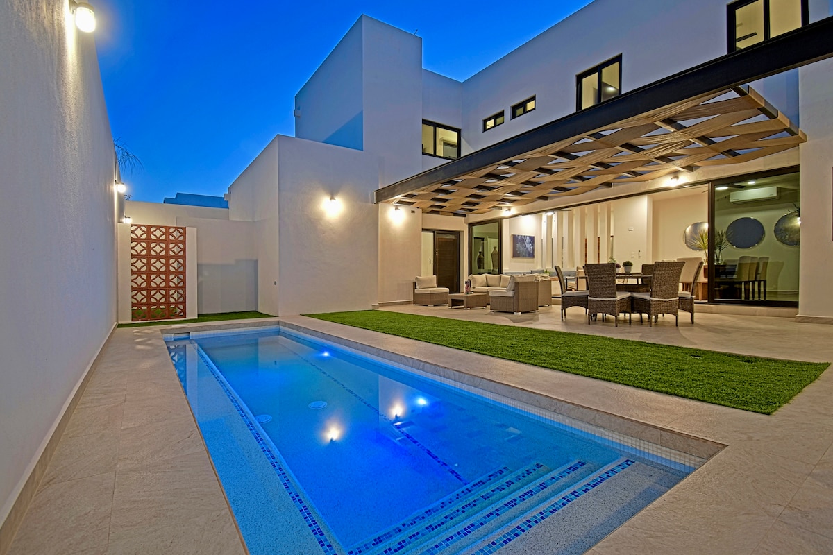 Casa vacacional amplia, comoda y elegante con acabados de lujo. Ideal para disfrutar con familia, equipos de trabajo y/o amigos. Ambiente familiar. 3 Máster Suites, 1 en planta baja. Cuenta con terraza con vista a la alberca, ventanales con vista panorámica. Área de jardín ideal para convivir y disfrutar. Residencial de alta seguridad con acceso controlado. Zona privilegiada cerca de restaurantes, hoteles, plaza comercial, estadio de baseball y aeropuerto. A 10 minutos del centro de gobierno.