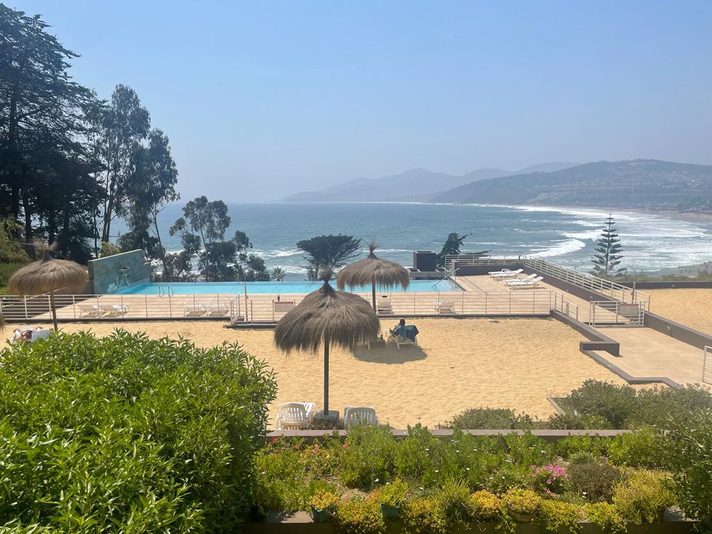 Compramos este departamento porque nos enamoramos de la vista y de la belleza del condominio. Lo remodelamos completo y quedó muy acogedor. Nuestros huéspedes podrán disfrutar del atardecer en la terraza y del amanecer escuchando el mar. El condominio cuenta con cuatro piscinas y una de ellas es temperada. Pueden disfrutar del quincho, la cancha de tenis y bajar por el ascensor directo a la playa. Está pensado solo para parejas y estamos seguros que disfrutarán de una estadía espectacular.