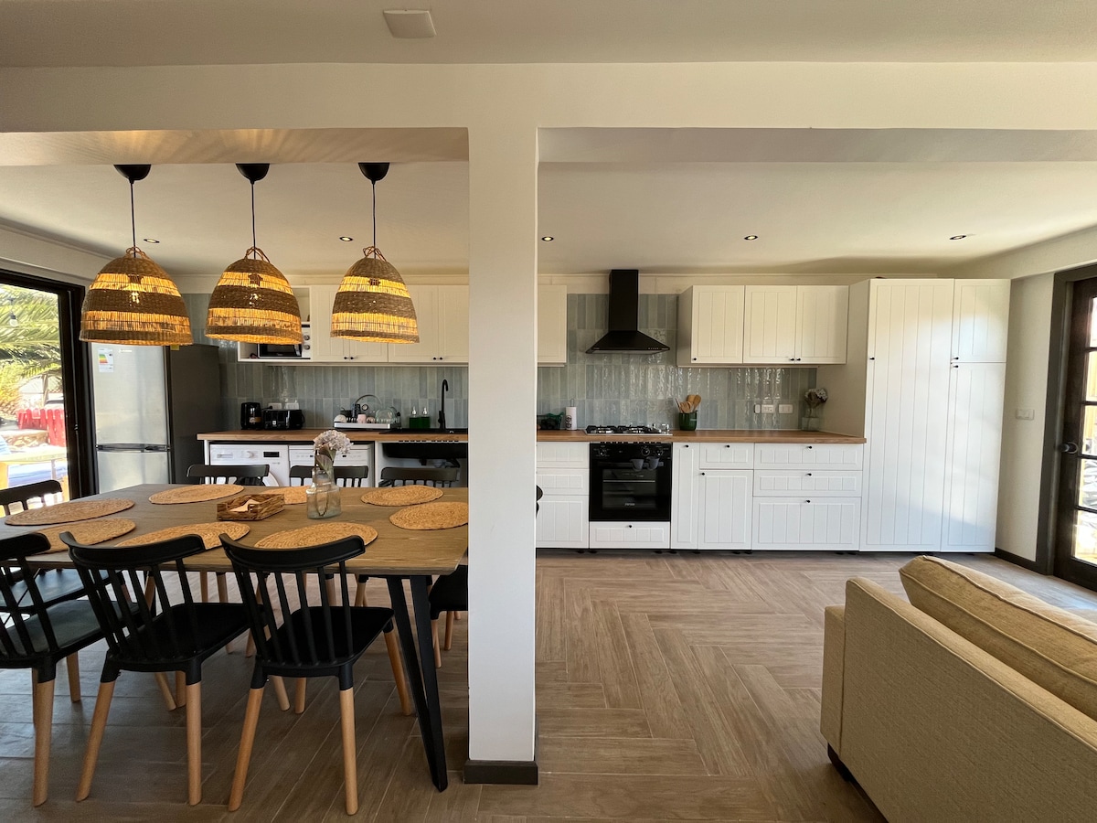 Acogedora casa a una cuadra de la playa ideal para ir en familia. Cuenta con un amplio espacio común con cocina integrada y equipada con todo lo necesario para que en tu estadía puedas dedicar tu tiempo a descansar y pasarlo bien. Las camas de los 3 dormitorios cuenta con colchones nuevos de resortes y radiadores electricos. Cuenta con dos juegos de terraza para el exterior, un comedor al aire libre y parrilla.