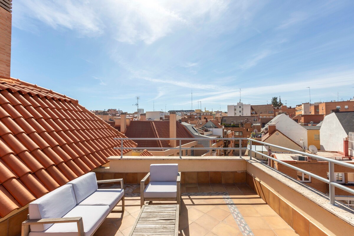 Super bright, spacious penthouse/duplex in the center of Madrid, fully exterior and provided with two private terraces, private parking and swimming pool (open from mid-June to mid-September). Ideal for travelers who are looking for a quiet place to rest at night but centrally located and within walking distance of leisure options. No hassle to get here by car as it is located outside the traffic restricted area called 'Madrid Central'.
