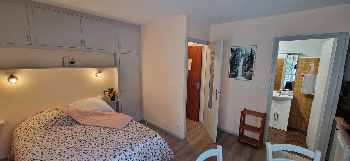 Studio de 24m² entièrement rénové, situé dans une résidence très calme à côté des thermes. Au 2ème étage avec ascenseur. Accès autonome grâce à une boîte à clé. Draps et serviettes de toilette fournis Idéal pour 2 personnes Possibilité d'accueillir une ou deux personnes supplémentaires, merci de me contacter