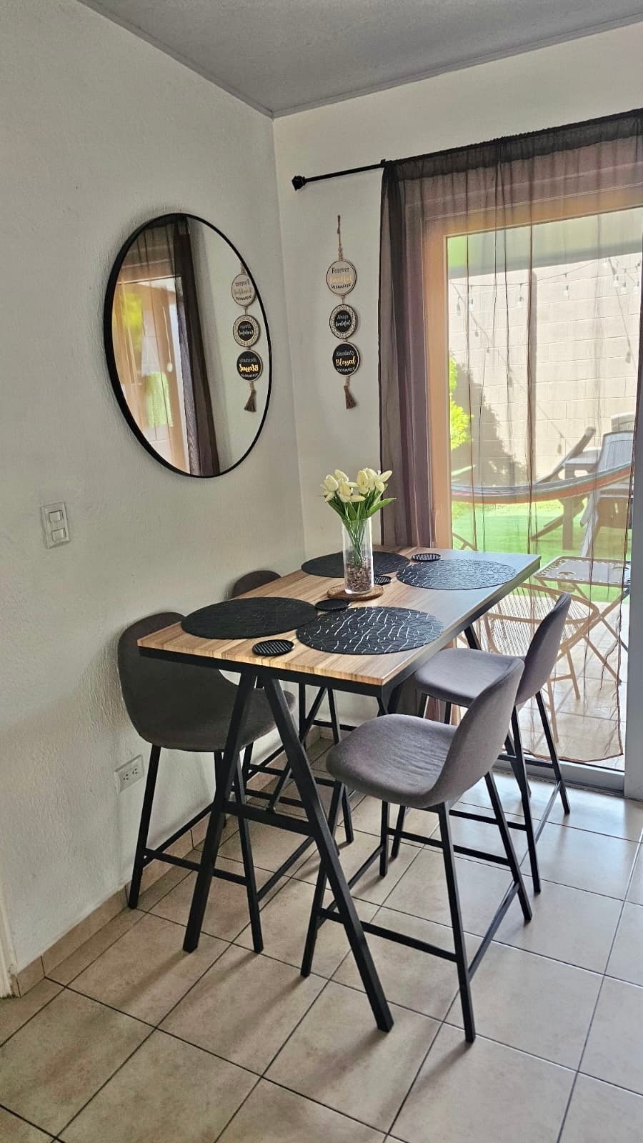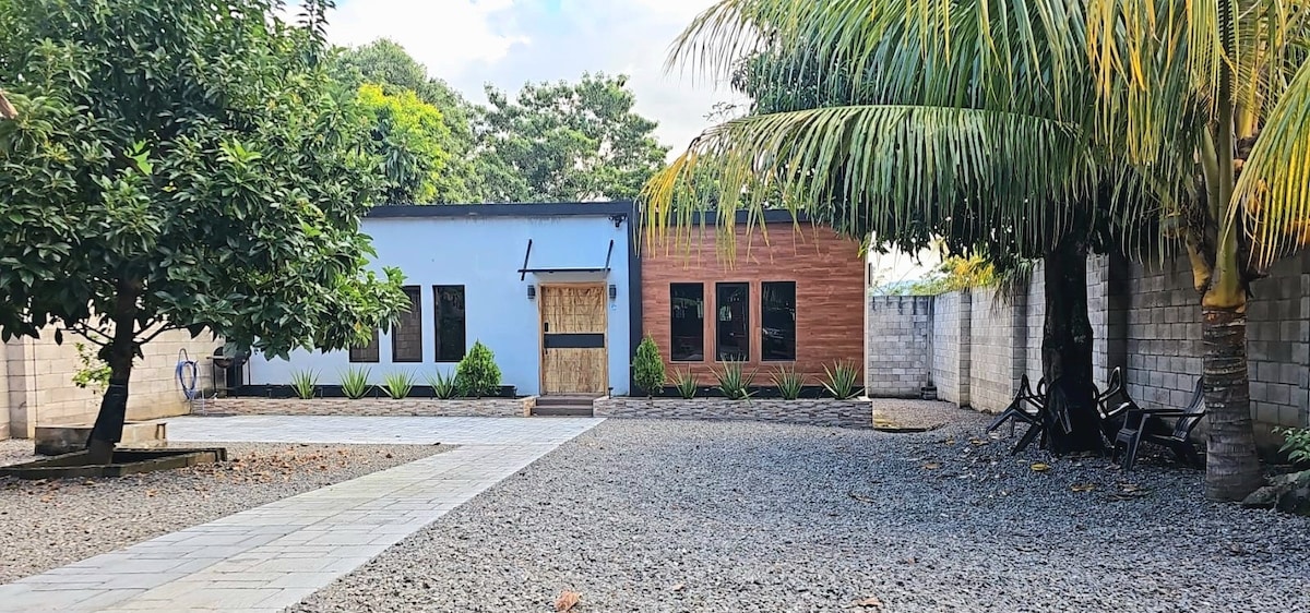 Bienvenido a Serenova Hideaway, casa moderna, acogedora. 2 habitaciones cómodas con aires acondicionados, sala acogedora con lámparas modernas, comedor independiente, cocina full equipada y un patio para disfrutar al aire libre. 2 parqueos privados, piscina justo frente a la casa, además de canchas de fútbol, baloncesto, senderos y mall cercano. Perfecta para todas las personas; ofrece confort, estilo y funcionalidad, cerca del occidente, zona central y playas. Relájate y siéntete como en casa.
