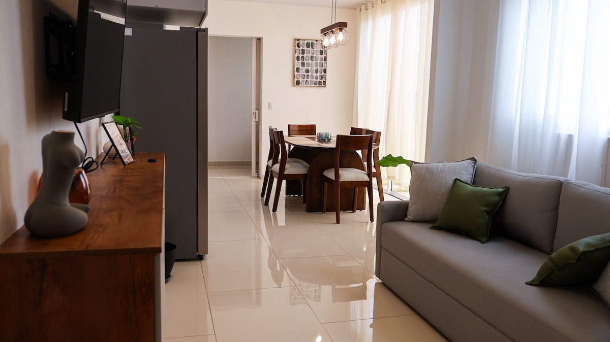 Relájate en nuestro alojamiento. Perfecto para descansar luego de un viaje vacacional o de trabajo . En una zona privada , limpia y ordenada. Cerca de Centro comercial, súper mercado, Dollar city, tienda de conveniencia Pronto, gimnasio, gasolinera, veterinaria, restaurantes y más . Piscina dentro de la residencial . Cuenta con cochera techada para 2 vehículos . Terraza con hamaca. Aire acondicionado en las 2 habitaciones y 1 en la sala . Cuenta de Netflix disponible para tu estadía .