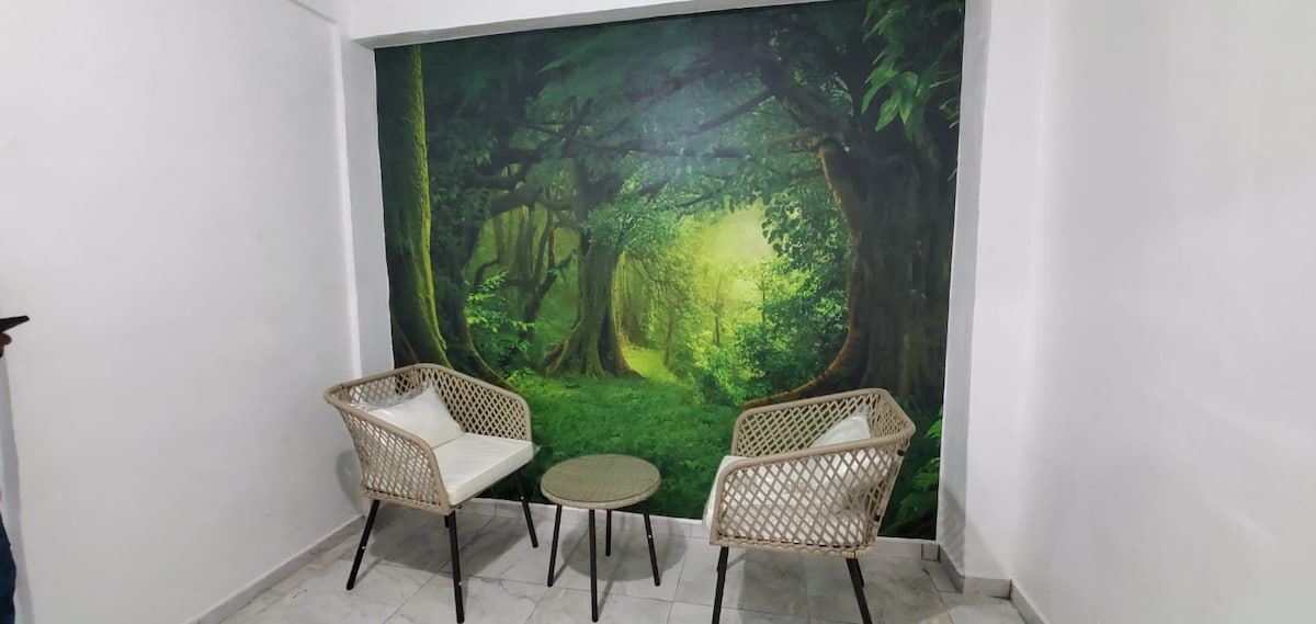 Alojamiento con excelente reputación y múltiples reseñas positivas 🥇🍀 Cuenta con sala, comedor, cocina, 2 habitaciones con tv📺 y aire acondicionado,un baño, jardín interno🏡, área de lavandería y parqueo para 2 vehículos🚗. Tiene internet de 200mb y Netflix. La residencial cuenta con seguridad privada, piscina🏖, parque interno, cancha de basketball y cancha de fútbol. El centro comercial está a un minuto. AL RESERVAR ES NECESARIO BRINDAR DOCUMENTO DE IDENTIFICACIÓN.