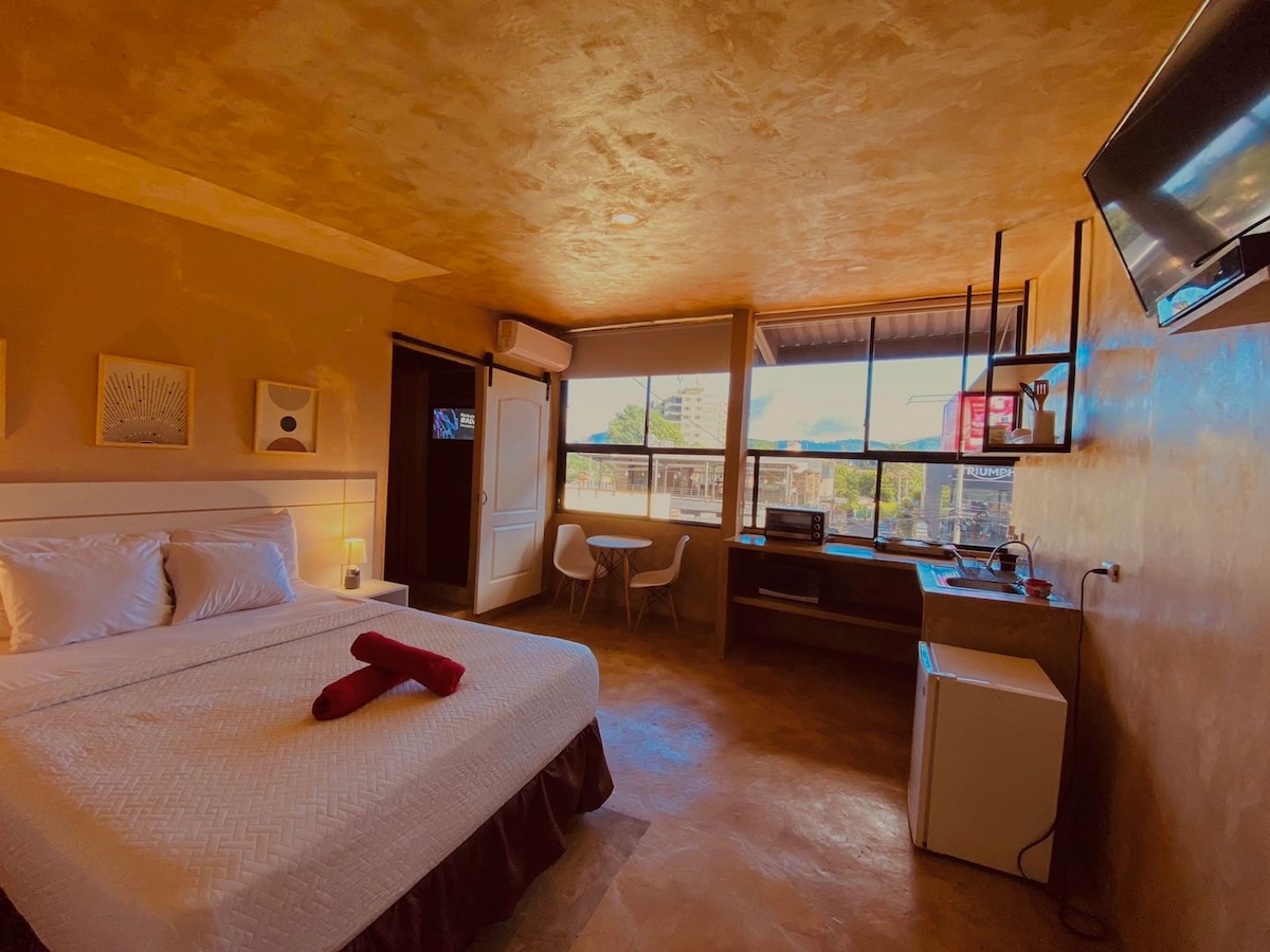 Completely private studio apartment. Our studio apt. is located on the 3rd floor of our 24/7 hostel “La Zona”. Your stay includes a fully equipped studio Apt. with everything you need for long or short stays: private bathroom, kitchenette, dining area, t.v, wifi, daily cleaning & breakfast. Our premises are equipped with everything you need for long and short stays.