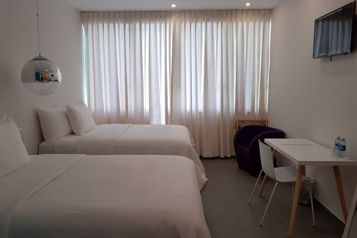 El dormitorio cuenta con 2 camas y la posibilidad de poner una cama extra para poder hospedar hasta 6 personas. Es completamente privada y tiene baño privado con agua caliente, televidor y wifi. Incluimos un desayuno continental por persona y contamos con varios amenities adicionales dependiendo del numero de noches de la estadia. Contamos con una de las mejores ubicaciones en la ciudad. Cerca de oficinas, restaurantes y supermercados. A solo 30 min de la playa y otros lugares turisticos