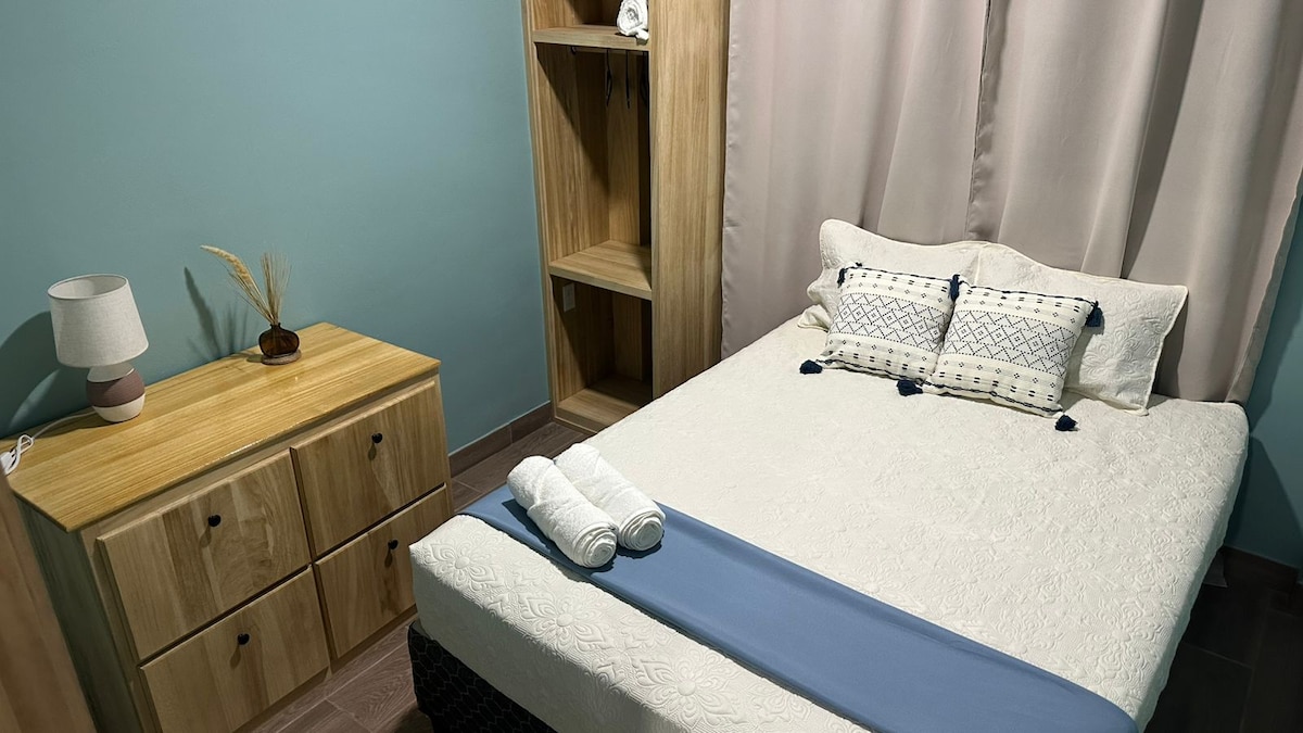 Esta opción de apartahotel en el corazón de Surf City ofrece dos habitaciones ideales para grupos o familias. Una cuenta con una cama queen para mayor comodidad y la otra con dos camas individuales. Incluye aire acondicionado, baño privado con agua caliente y una cocina completamente equipada. Ubicado cerca de playas icónicas como El Tunco y Punta Roca, es el lugar perfecto para descansar y disfrutar después de un día de surf y aventura.