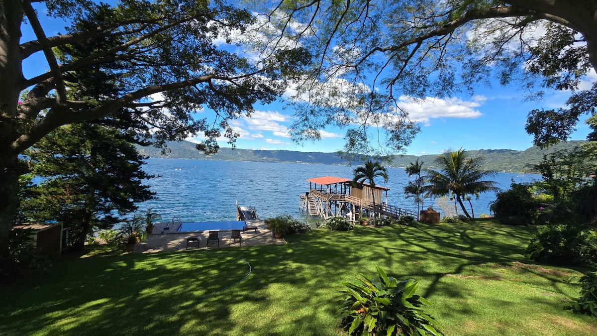 Perfect place to enjoy in private outside your home. Come experience Lake Coatepeque, a unique volcanic lake in Santa Ana. This is a lake house that has been recently renovated with a new on-lake deck, bathroom, floors, and other improvements. The house faces Lake Coatepeque. There is a kitchen, living room and wonderful terrace. Its about 45 minutes from San Salvador. There is free parking and a care taker who can provide assistance. Please ask about accommodations for service professionals.