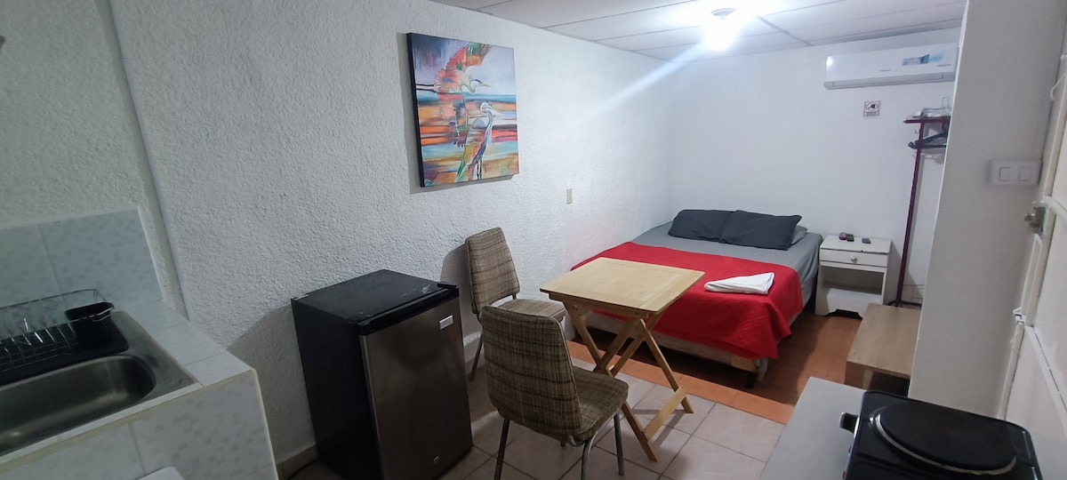 Disfruta de una estancia relajante en este estudio acogedor y minimalista, ideal para parejas o aventureros que desean un lugar relajante con todas las comodidades necesarias. Ubicado cerca de comercios, restaurantes y áreas de interés. Este lugar es ideal para quienes desean explorar la zona sin renunciar a la paz y serenidad de un ambiente hogareño. Nos esforzamos por mantener un espacio abierto, moderno y respetuoso, donde la convivencia se basa en la empatía y el respeto mutuo.