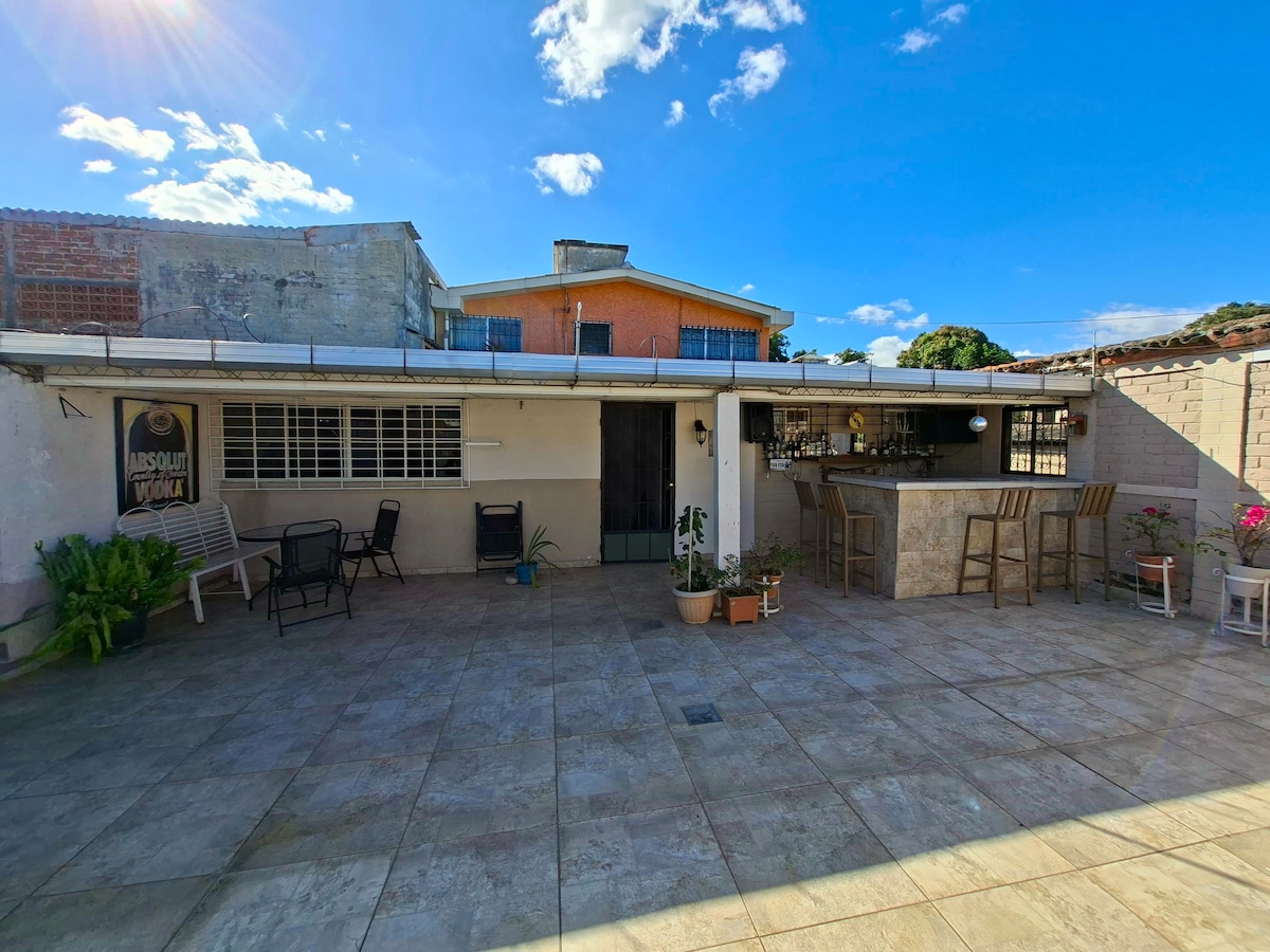 El Alojamiento está decorado rústicamente, luz natural; habitación con aire acondicionado y baño; sala, cocina y comedor de concepto abierto, estacionamiento sin techo en las instalaciones para 1 vehículo. La entrada es completamente independiente, residencial privada con seguridad 24/7. Está ubicado en Miralvalle, zona céntrica a 5 min de centros comerciales, supermercados y restaurantes, así como también a 45 min en carro del Aeropuerto Internacional Arnulfo Romero.