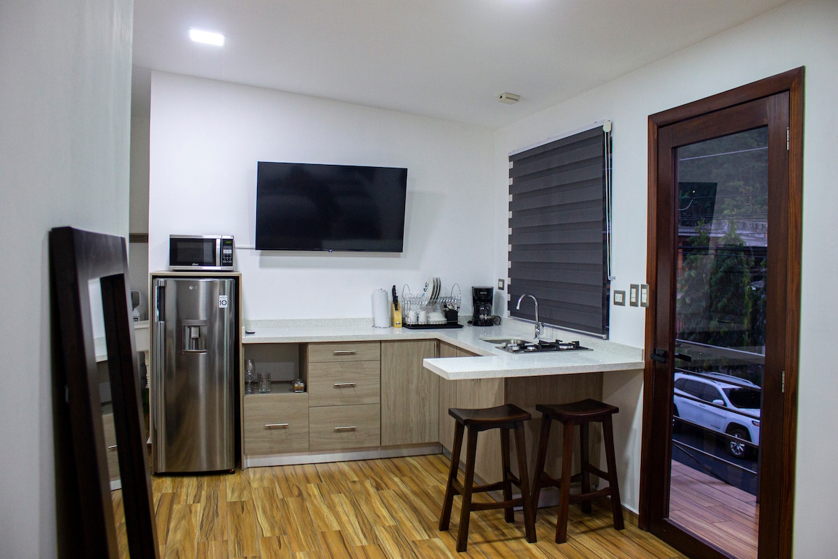 Nuestro Mini Loft Mhom, está ubicado en el centro de la ciudad de Santa Tecla, en el departamento de La Libertad. El alojamiento se encuentra a 20 minutos de Surf City y Volcán El Boquerón, 10 minutos de Centros Comerciales mas exclusivos y Zona Rosa, 5 minutos a pie de Paseo El Carmen. Además todo el primer nivel del edificio es un Mini Market (abarrotes) por si necesitas comprar cosas de primera necesidad o hacer mercado durante tu estadía.